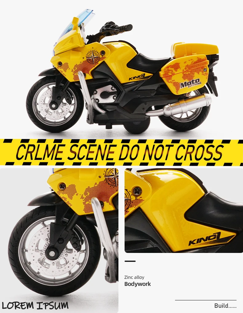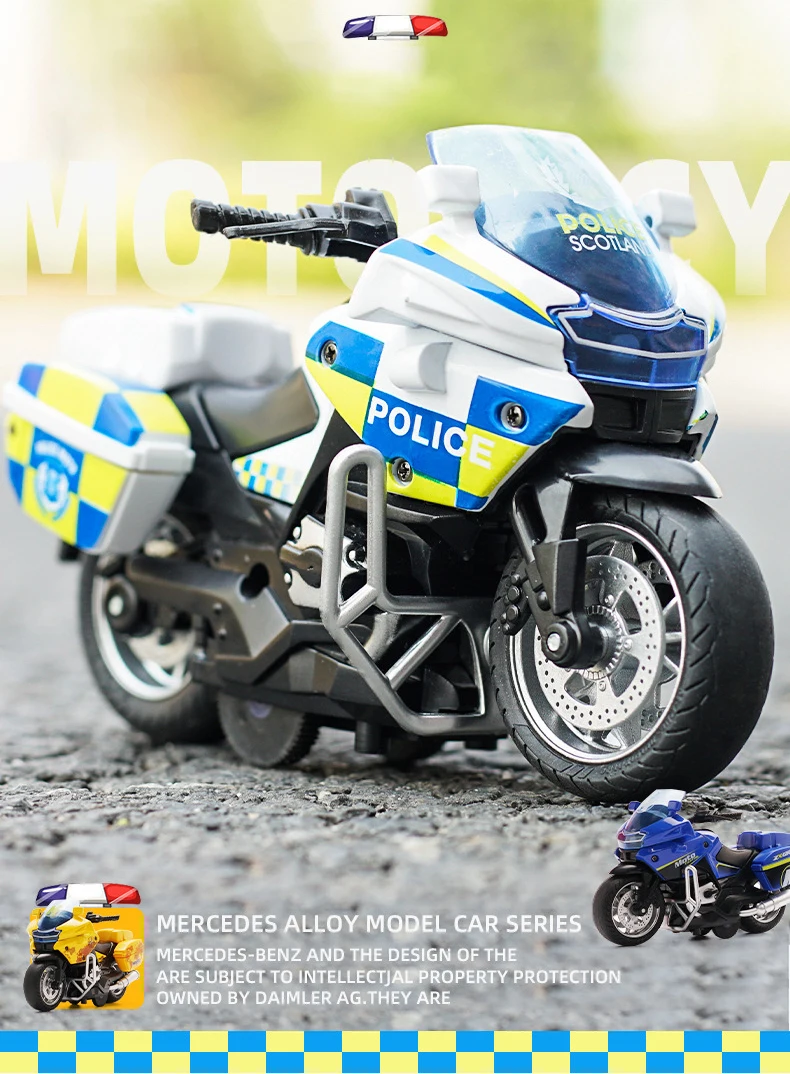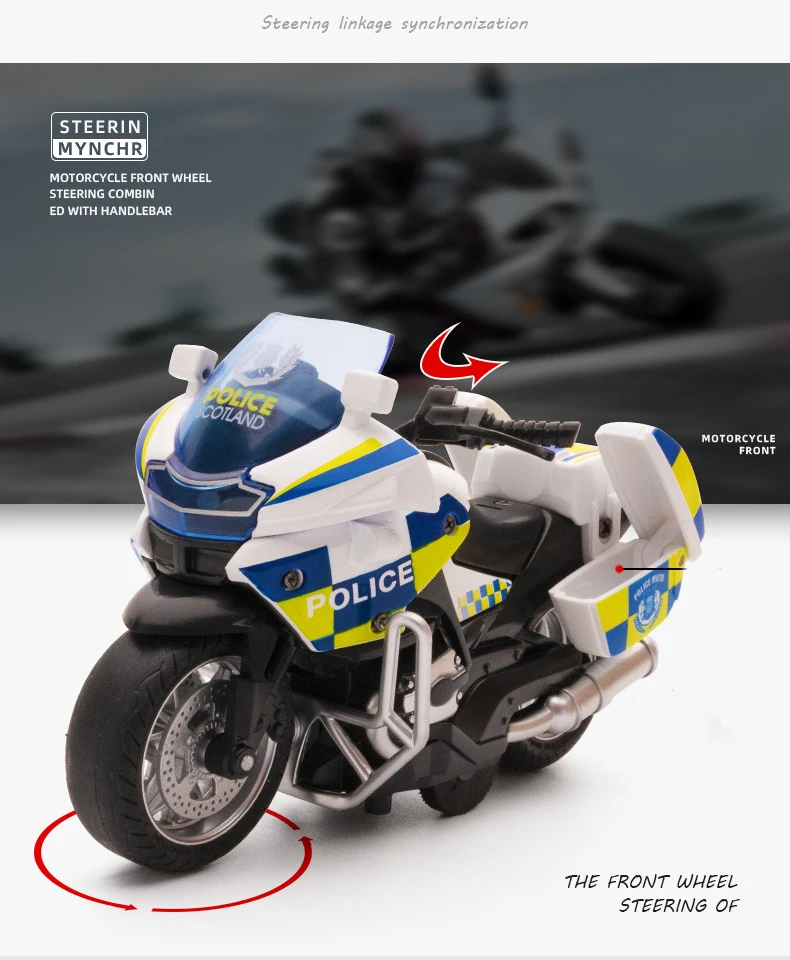 1/14 modelo de carro liga puxar para trás motocicleta locomotiva masculina carro de polícia com luz e veículos de simulação de música brinquedos infantis
