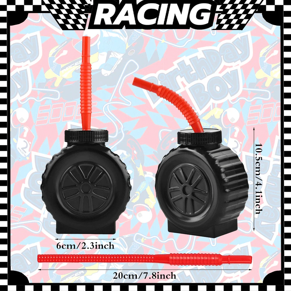 1/2/4/6/8/10 pçs copos de pneu com forma de roda de palha vermelha cross country carro de corrida copos meninos corrida festa de aniversário decoração crianças presente