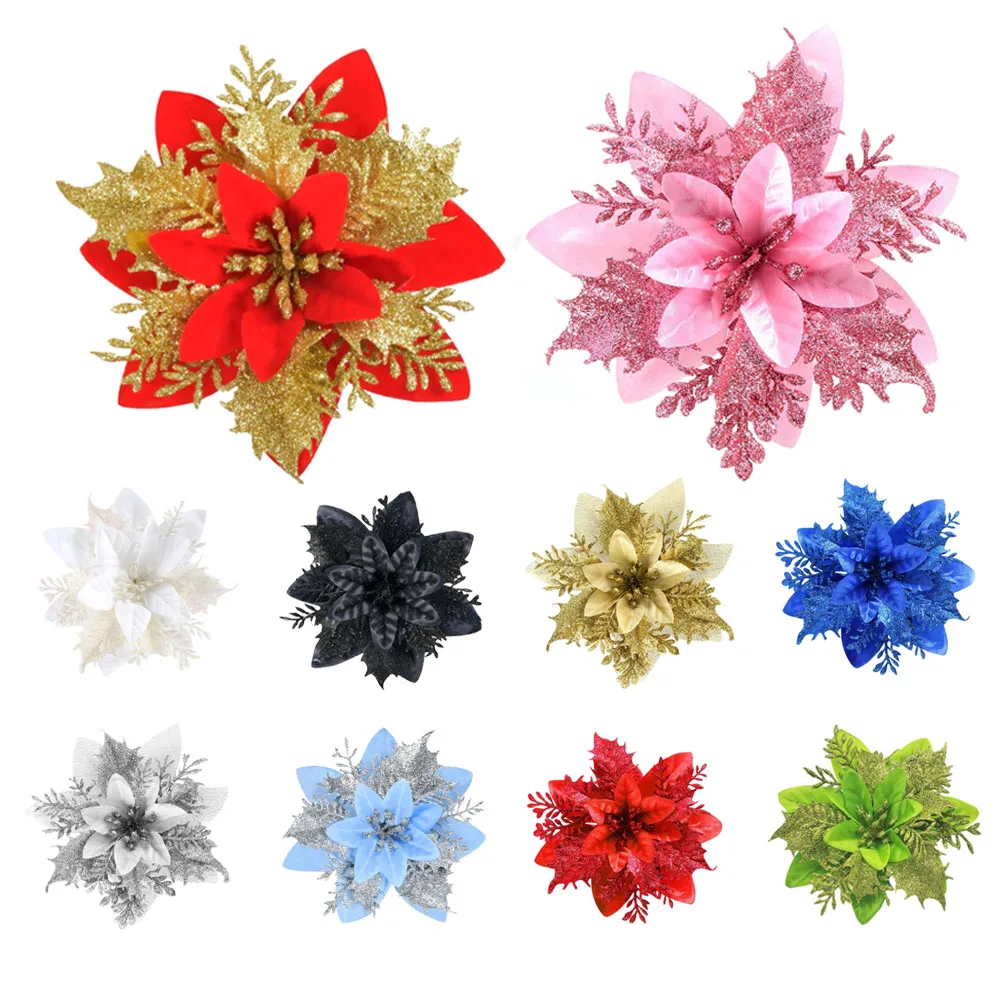 1 ~ 20 pçs glitter artificial flores de natal mreey decoração da árvore de natal feliz ano novo ornamentos natal flores falsas natal