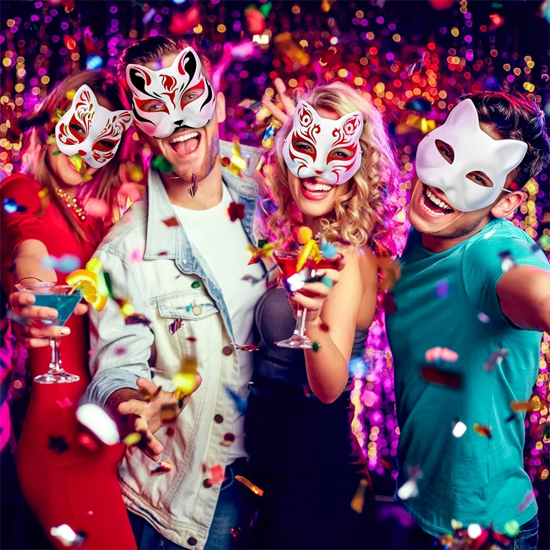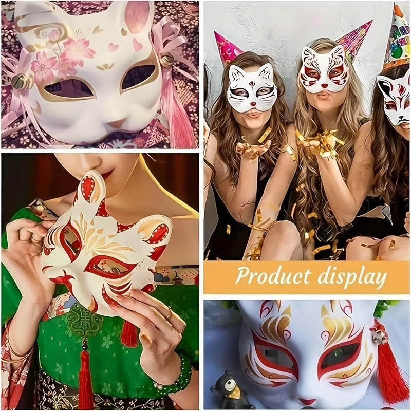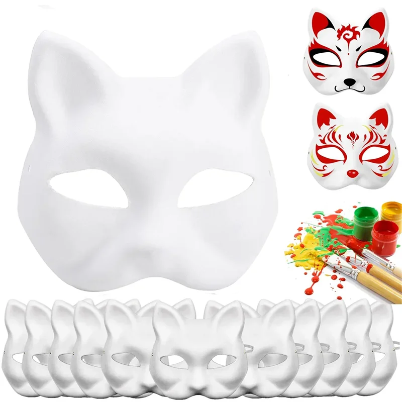 1-20 pçs máscara japonesa de papel em branco máscara halloween cosplay gato diy pintável meia máscara facial animal traje festa decoração artesanato prop