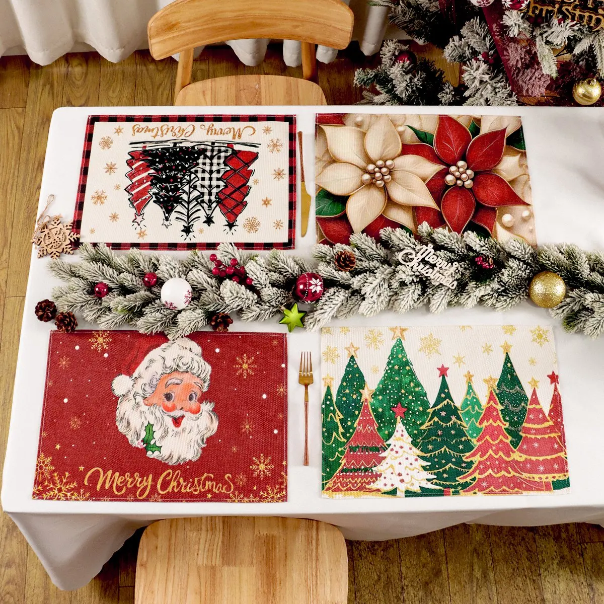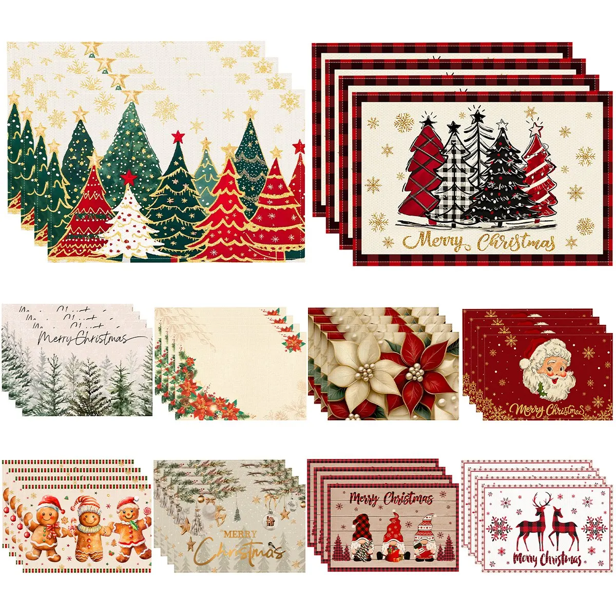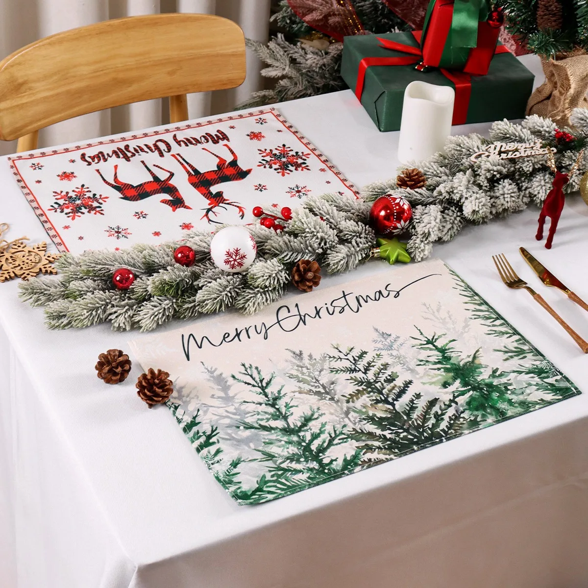 1/4 pçs árvore de natal elk placemat linho mesa de jantar esteiras coaster tigela copo café almofada esteira 2025 navidad casa cozinha decoração
