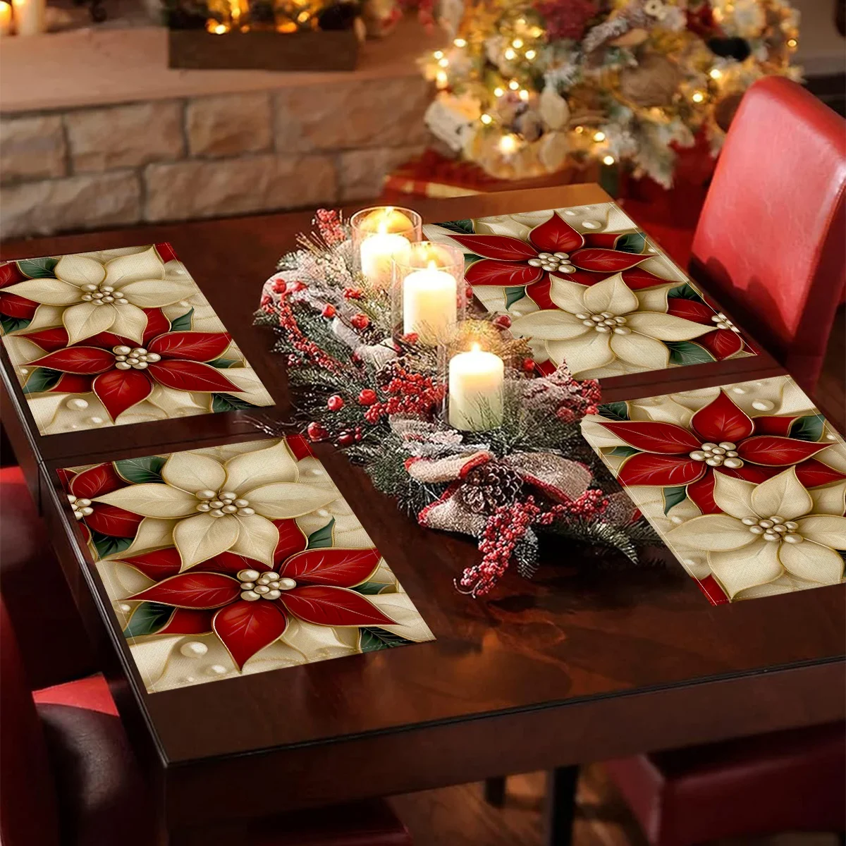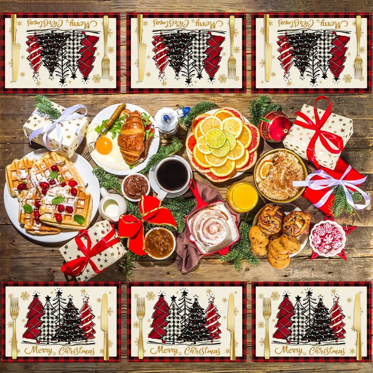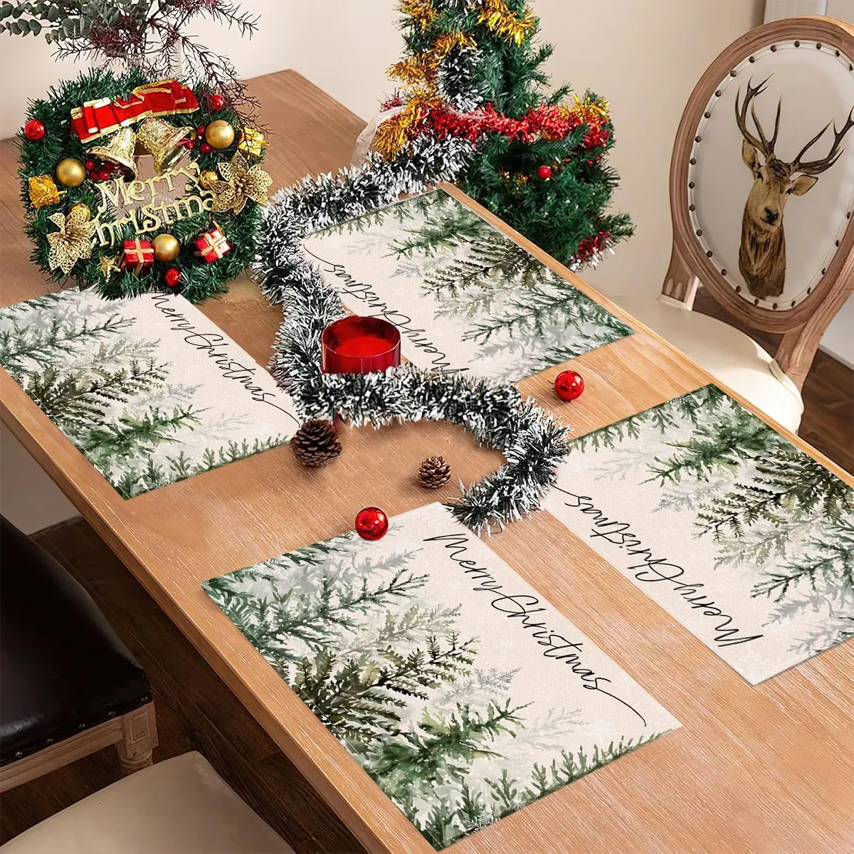 1/4 pçs árvore de natal elk placemat linho mesa de jantar esteiras coaster tigela copo café almofada esteira 2025 navidad casa cozinha decoração
