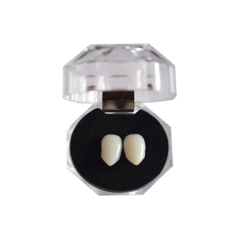 - > 1 par de dentes de vampiro, presas, adereços para dentaduras, fantasia de halloween, dentes falsos, cola sólida, adesivo para dentadura, decoração de festa de halloween
