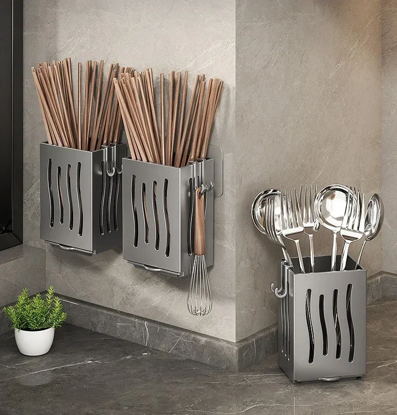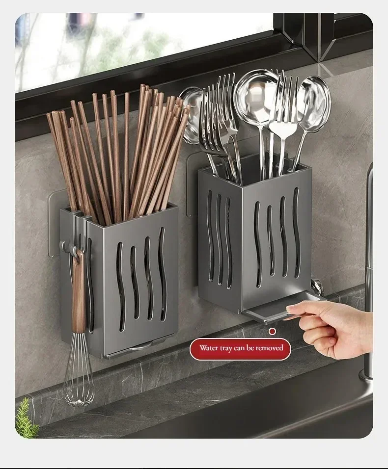 1-Piece Kitchen Utensil Rack-Multifunctional Draining Chopstick Holder,Wall-Mounted or Freestanding Cutlery Storage Box, Plastic