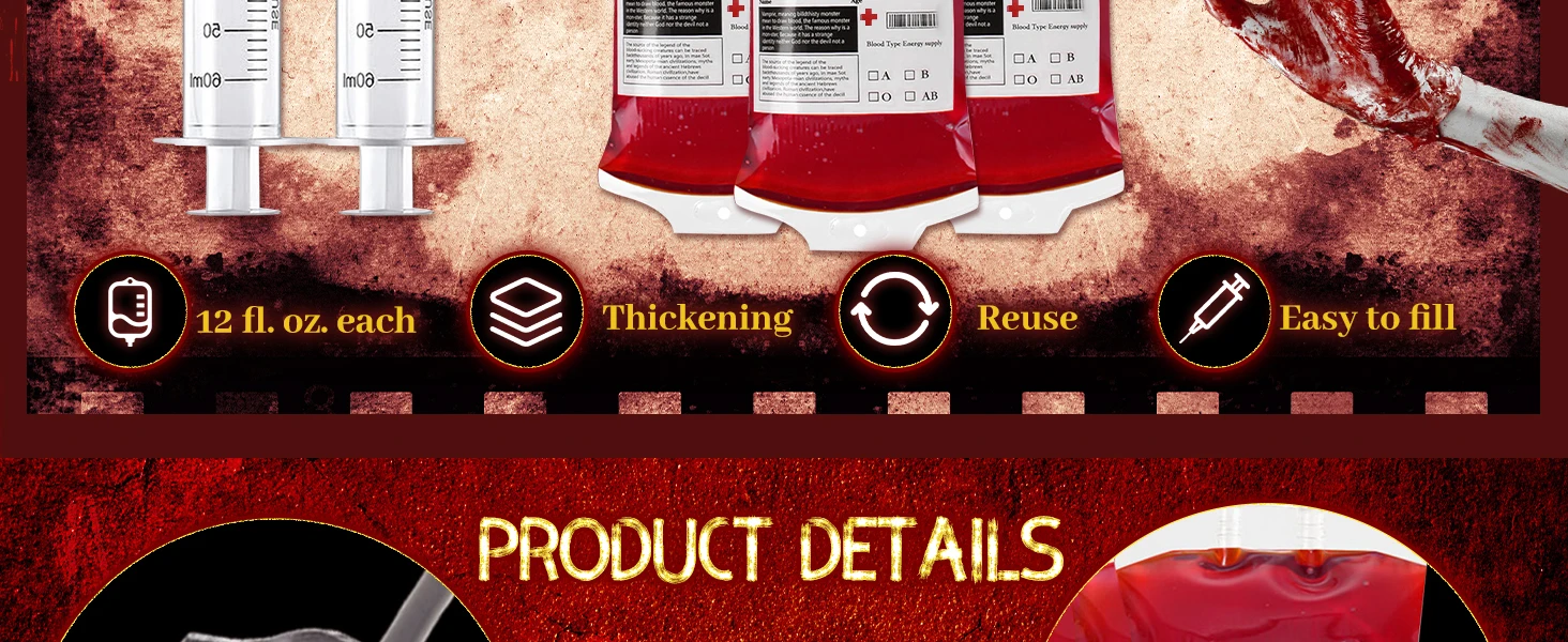 Os sacos de sangue para bebidas vêm com um funil para facilitar o enchimento. O design do fecho da tampa aparafusada garante uma boa vedação, não há mais falta de sangue pingando em sua capa de mesa com tema de Halloween ou em decorações com tema zumbi próximos.