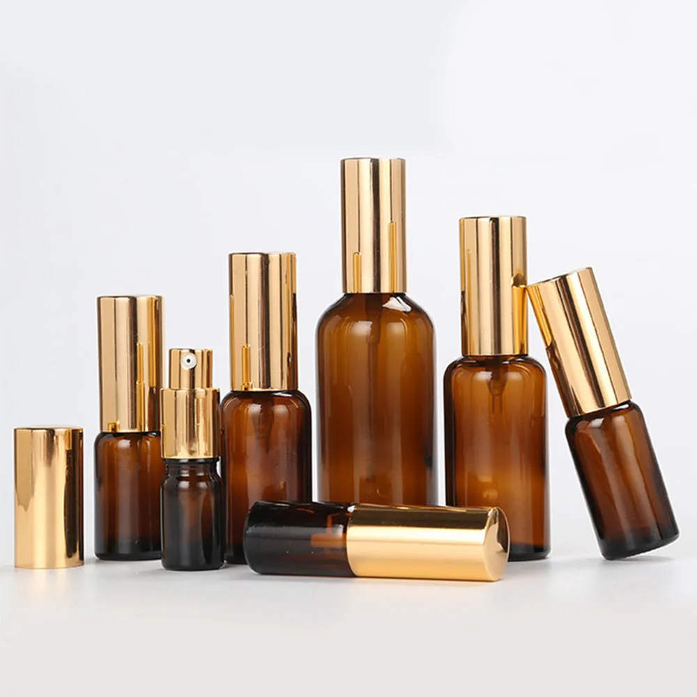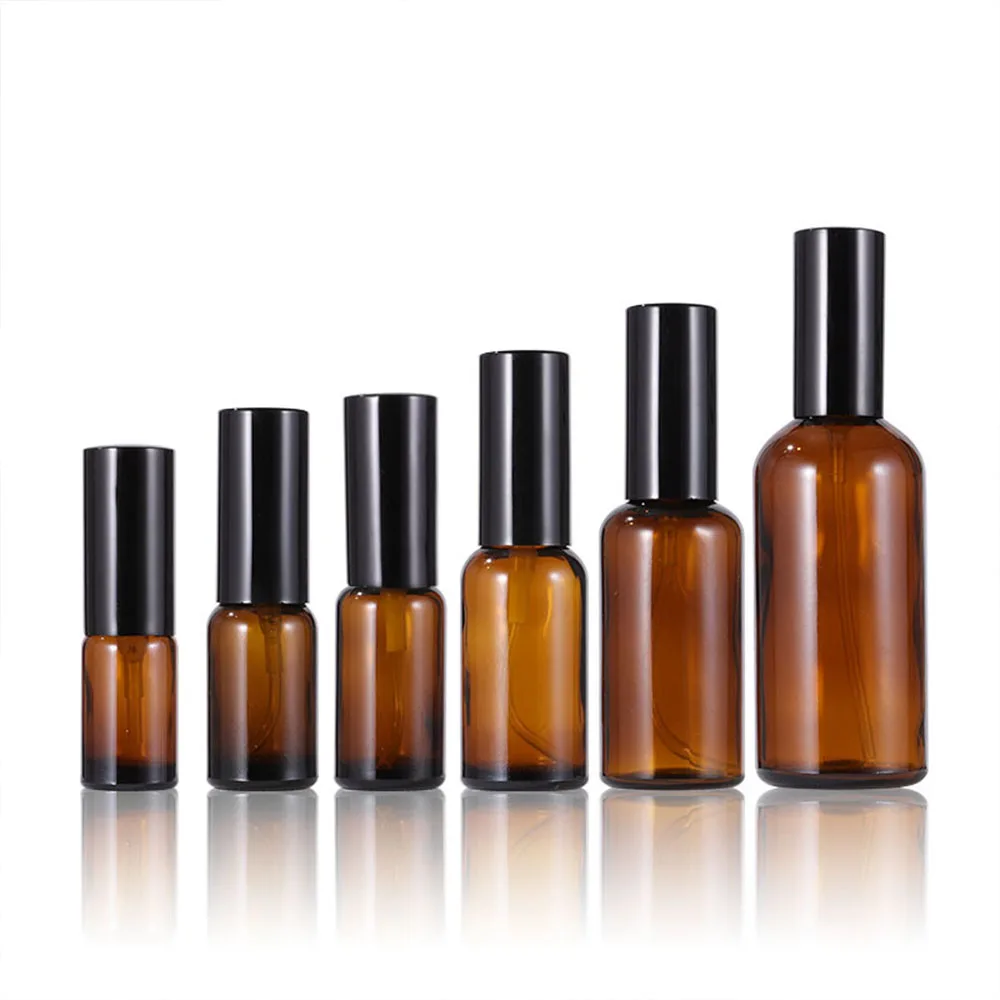 10/20/30 pces 10ml 15ml 20ml 30ml 50ml 100ml garrafa de pulverizador de vidro âmbar marrom loção bomba garrafa viagem perfume atomizador recarregável