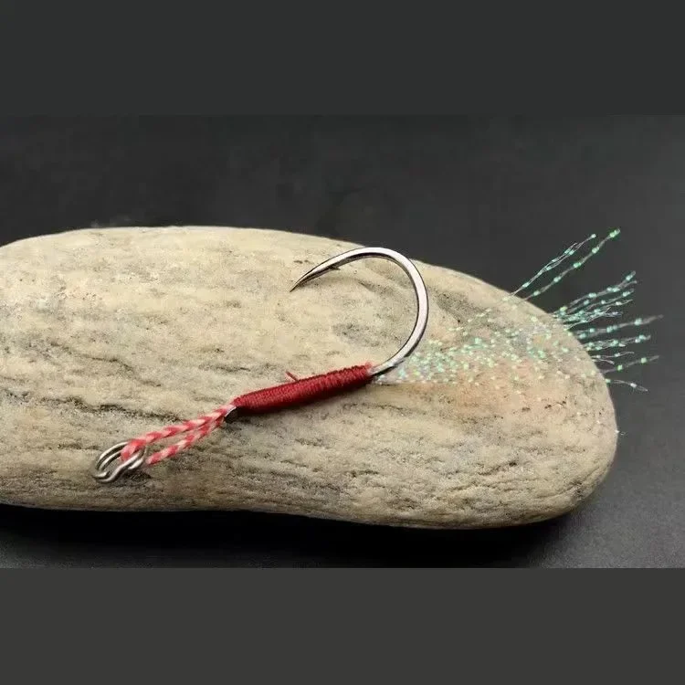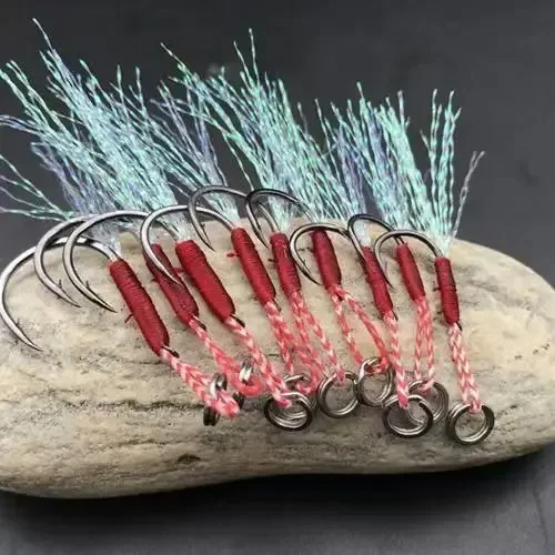 10 pçs/lote lento jigging pesca elenco gabaritos auxiliar gancho farpado único gabarito ganchos linha pena pesca aço alto carbono isca de pesca