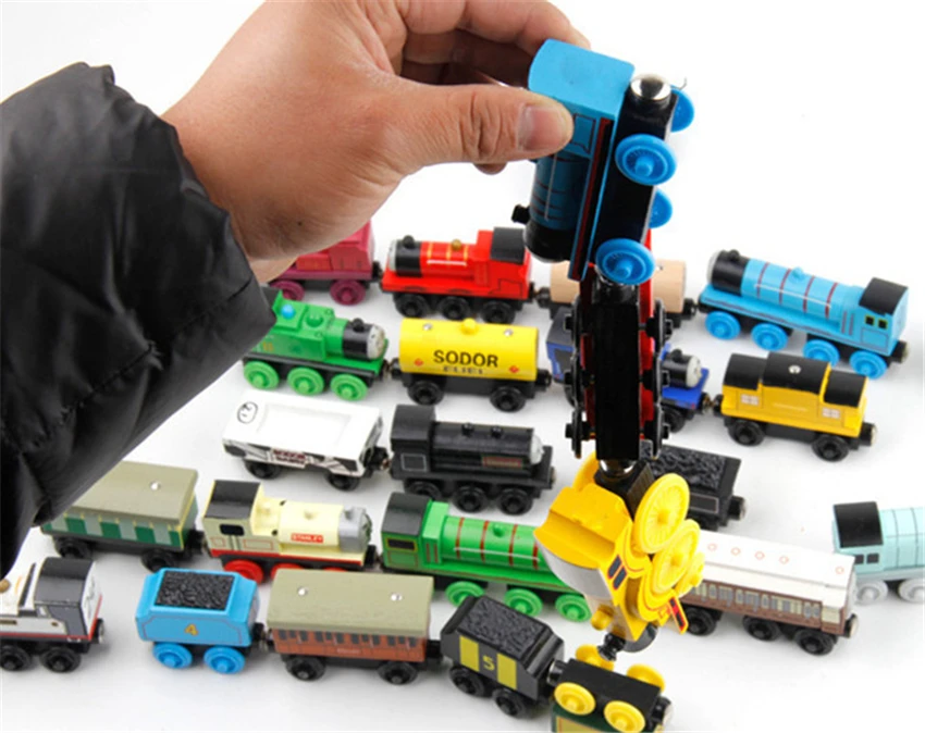 10 pçs/set trens de madeira magnética brinquedos pista veículo ferroviário locomotiva de madeira modelo de transporte para thomaing trem brinquedo presente crianças