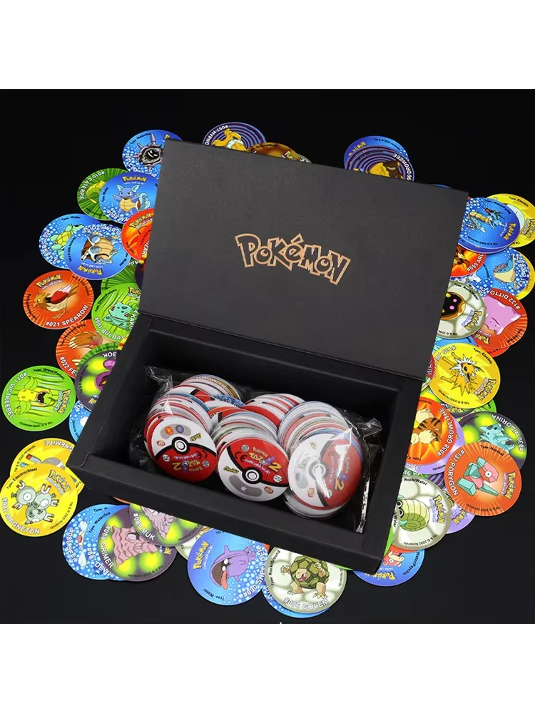 100/160 peças pokemon tazos 1/ 2 geração caixa de traços 3d redondo quadrado coleção cartões álbum treinador pogs cheetos chipitaps