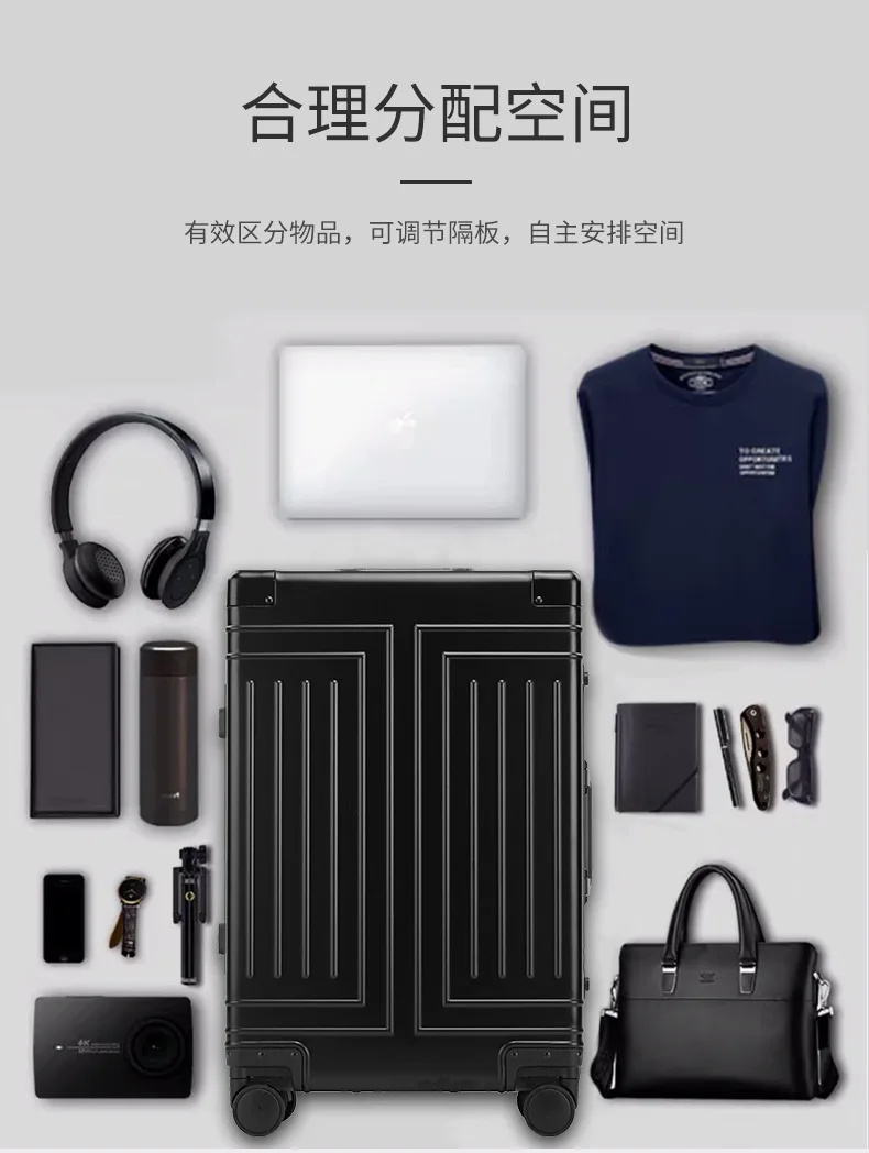 100% material de liga de alumínio-magnésio bagagem de viagem sênior de alta qualidade 20/24/26/28 tamanho spinner marca mala de viagem