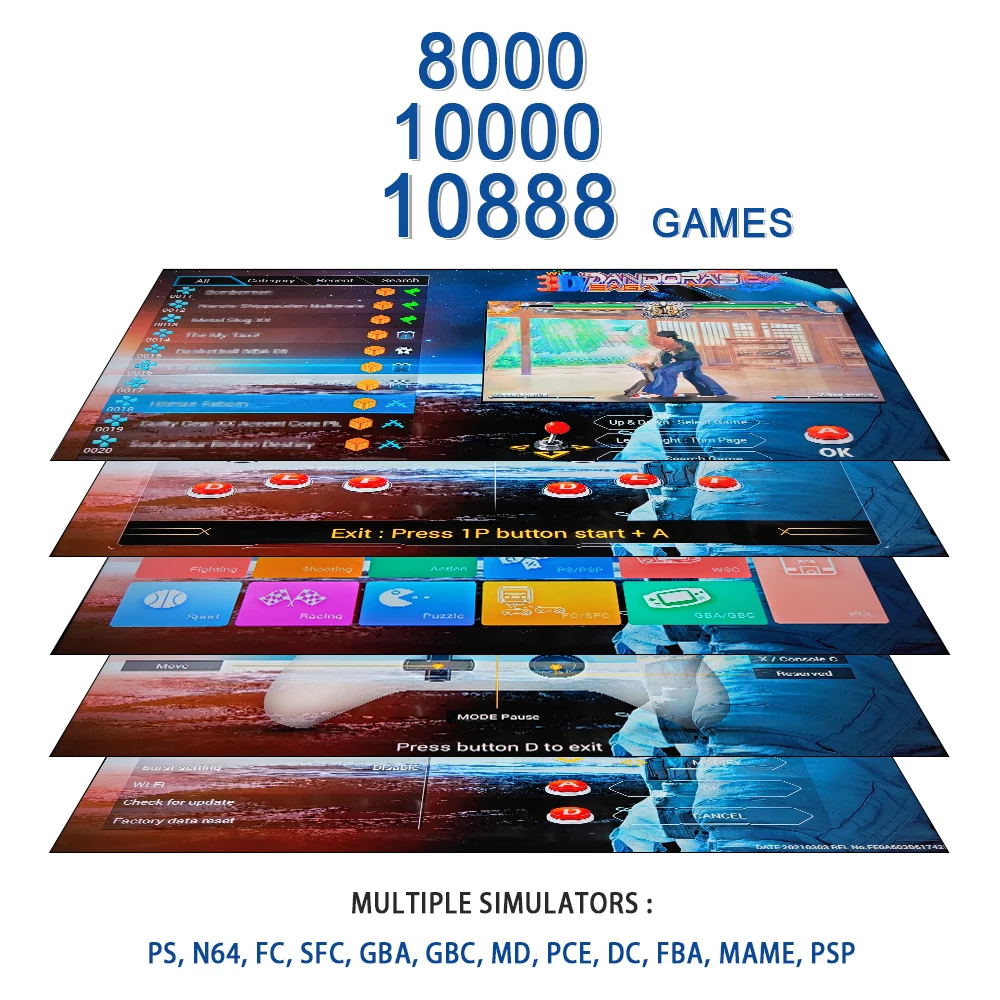 10888 em 1 3d wifi pandora saga ex2 caixa arcade kit diy game console led botão de luz 8 vias gabinete joystick bartop