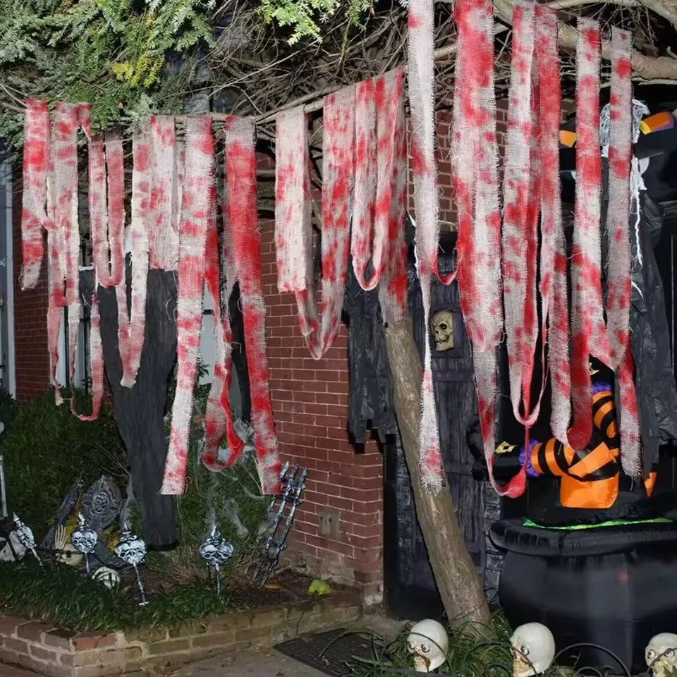 - > 10m pano de bandagem de sangue artificial halloween assustador decoraton tema terror festa cosplay adereços casa jardim diy decoração suprimentos