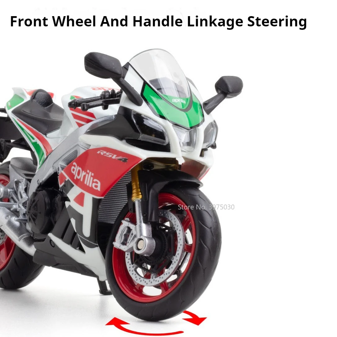 1/12 apulia rsv4 suzuki gsx modelo de carro brinquedo liga fundição roda dianteira direção traseira suspensão motocicleta presente das crianças