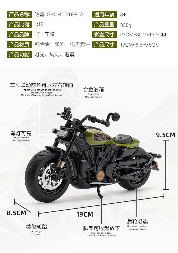 1:12 harley sportster s motocicleta alta simulação diecast liga de metal modelo carro som luz coleção crianças brinquedos presentes m41