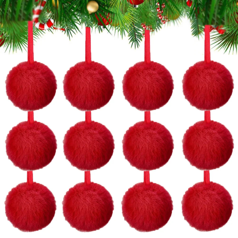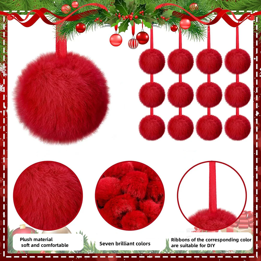 12/24 pçs 6cm pelúcia bola de natal decoração natal árvore ornamento navidad natal presente de ano novo 2026