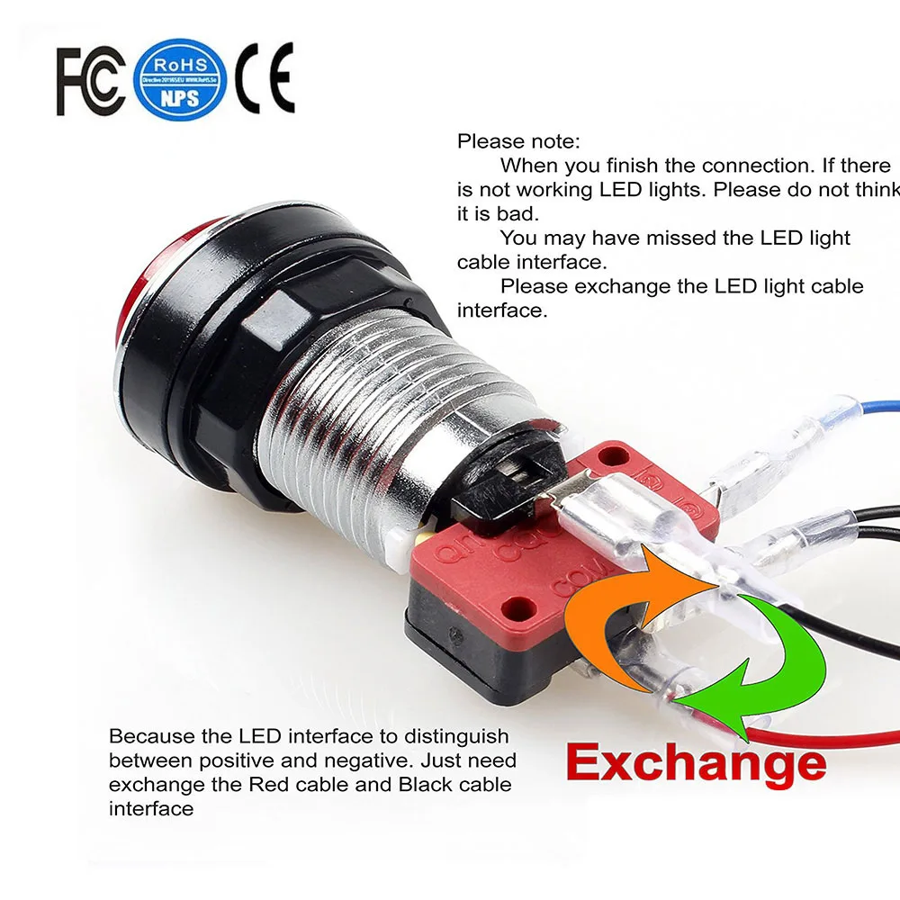 Botões de arcade com luzes LED de 5:4,8 mm * 16