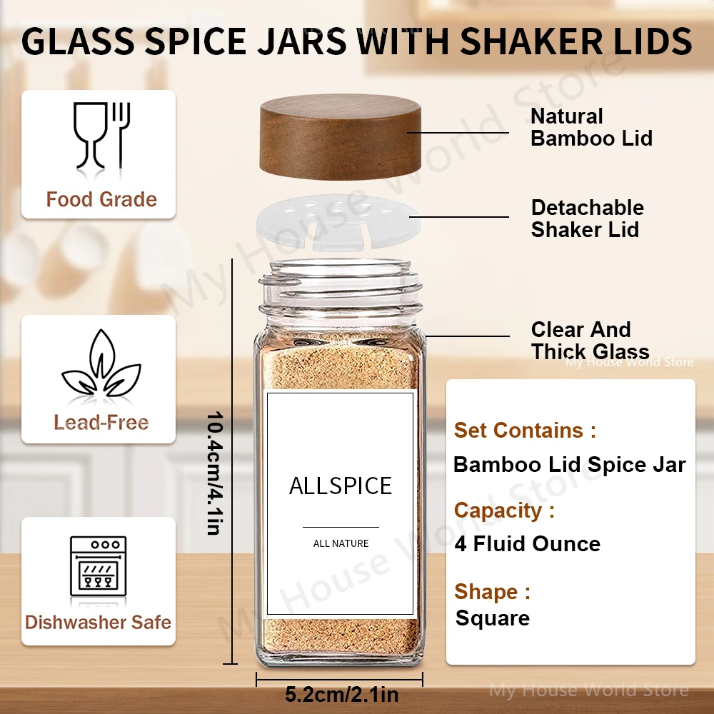 13 frascos de especiarias de vidro dos pces com tampas de bambu 4oz frascos de vidro conjunto tempero frascos organizador garrafas de armazenamento para cremalheira de especiarias