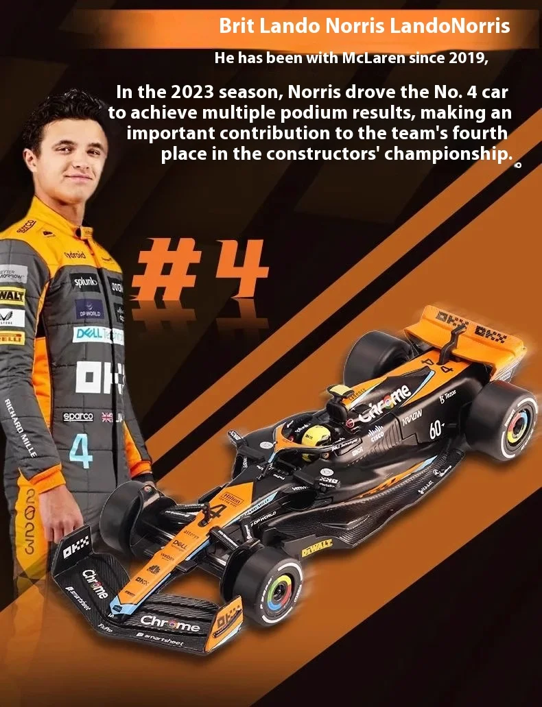 1:43 MCL60 2023 4 # Lando Norris P2 British GP Mclaren F1 #81 Oscar Piastri Diecast coleção de modelos de liga de amor clássico Hobby