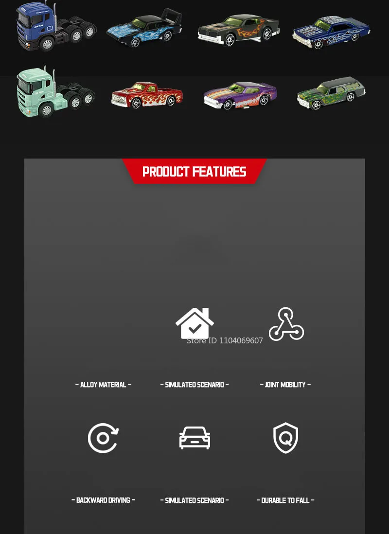 1. nome do produto: carros de brinquedo modelo de caminhão contêiner em escala 1:64
