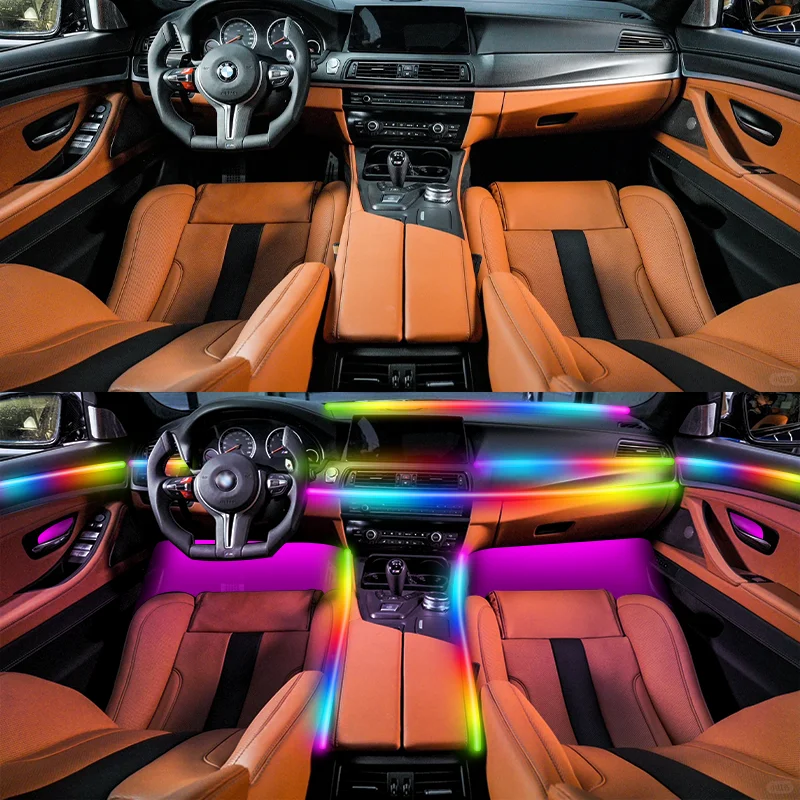 - > 18 em 1 zona dupla sinfonia streamer carro luz ambiente interior led cor cheia rgb neon acrílico tira atmosfera kit de iluminação app