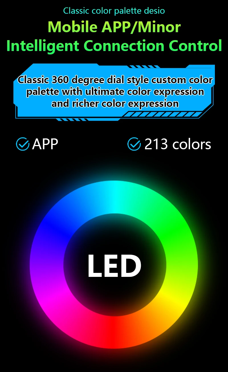 3) 213 cores podem ser trocadas à vontade, aplicativo ou controle remoto estão ligados, acompanhados de música