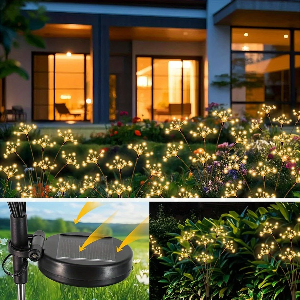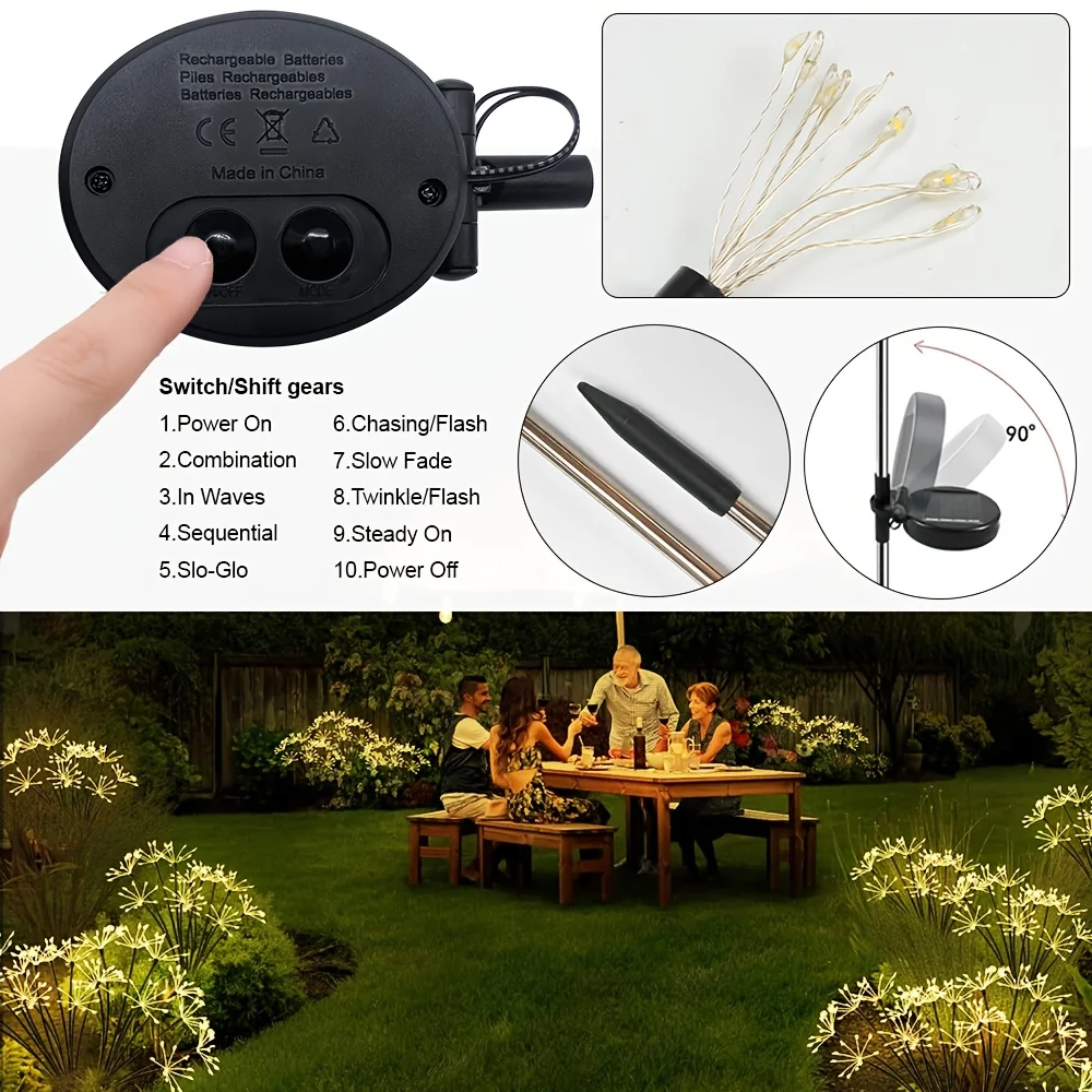 1pc luzes de fogos de artifício solares branco quente com 60leds para decoração de jardim ao ar livre, 2 modos, decoração de natal