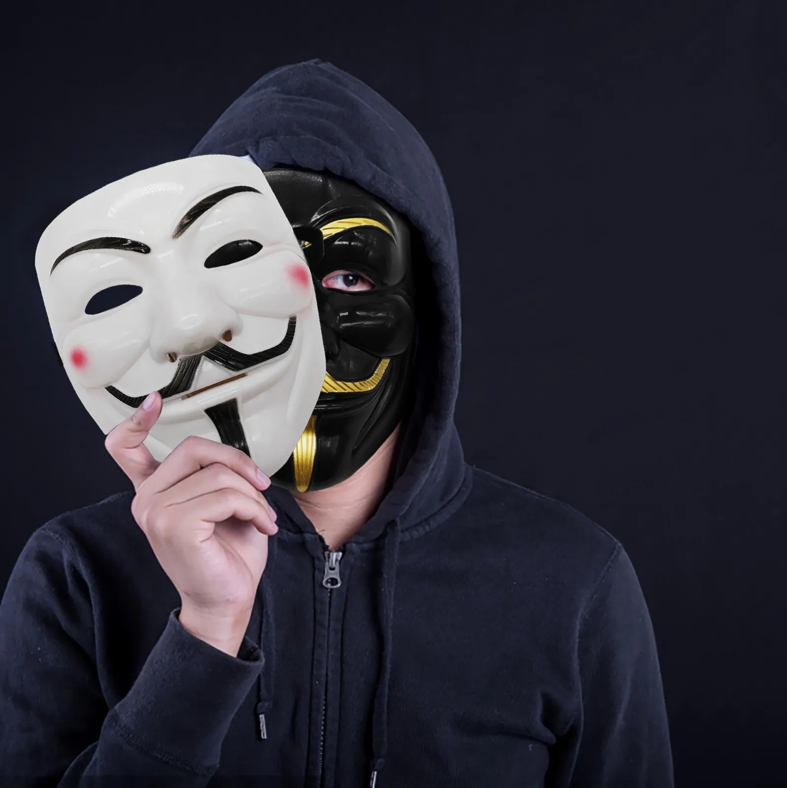 1pc máscara facial de halloween preto branco v para hackers de vendetta cos máscara halloween cosplay festa diy máscaras anime anônimo headwear