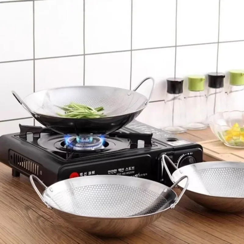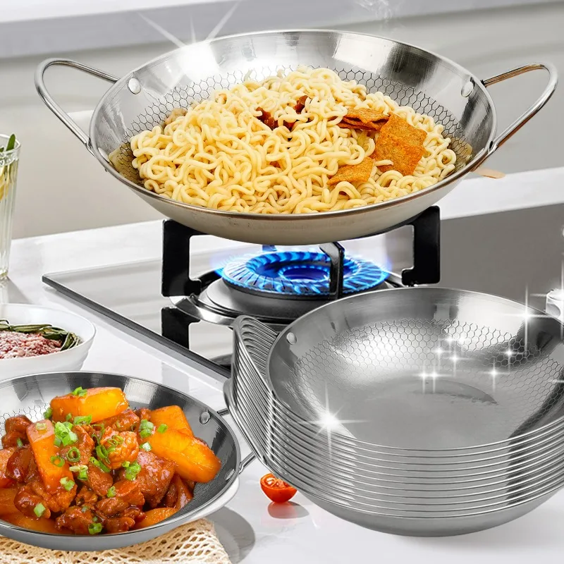 2-1 pçs frigideira de aço inoxidável engrossado casa antiaderente pan pequeno hotpot prata pote para ramen sopa ovo frito suprimentos