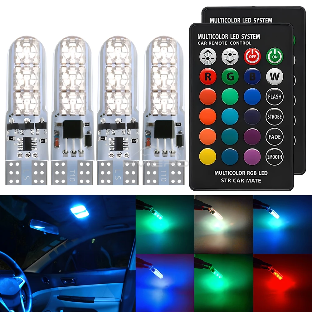 2/4 pçs t10 5050 6smd dc 12v à prova dwaterproof água w5w controle remoto rgb 194 168 cúpula luz silicone cunha lado carro sinal atmosfera lâmpada