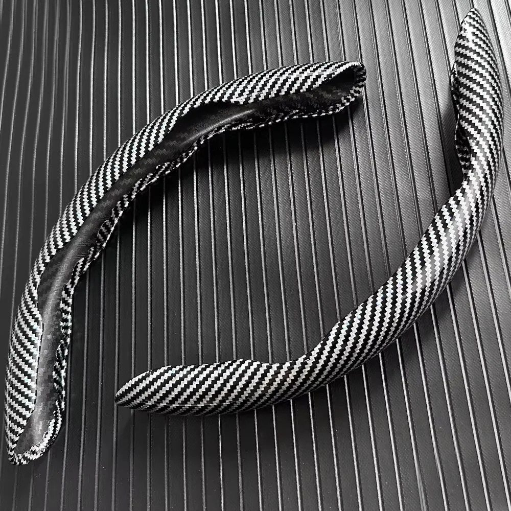 - > 2 pçs laser de fibra de carbono silicone capa de volante do carro 1k micro fibra couro pvc roda impulsionador capa antiderrapante universal