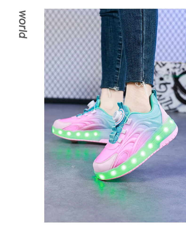 - > 2 rodas crianças led luz rolo sapatos de skate crianças meninos meninas brilhante esporte luminoso tênis ao ar livre skate carregamento usb