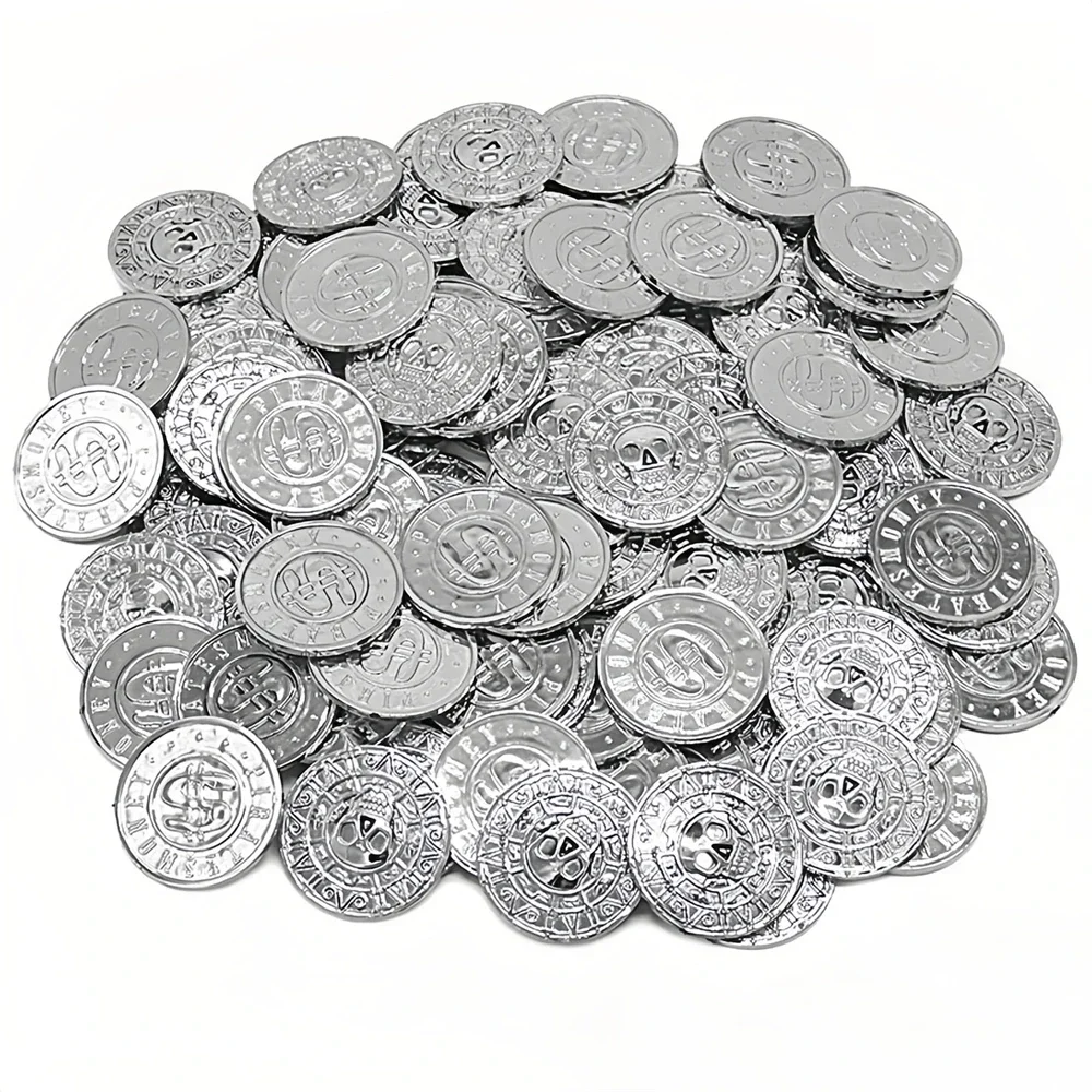 - > 20/50/100 pçs retro pirata moeda fontes de festa presente crianças favor brinquedos aniversário decoração do dia das bruxas falso tesouro plástico jogo moeda