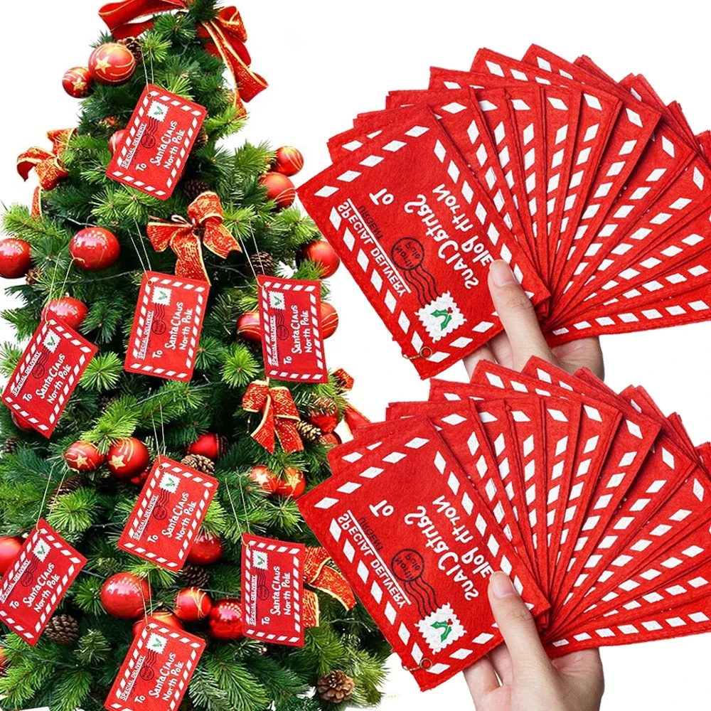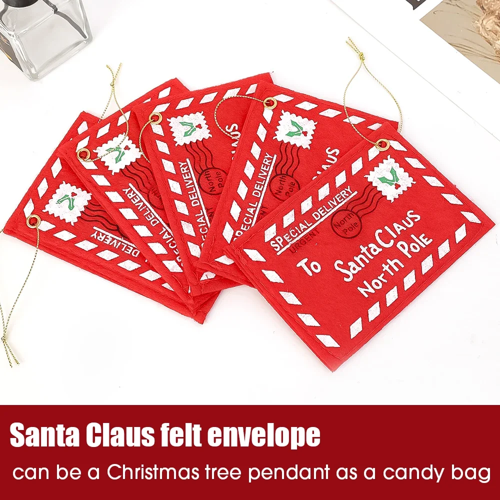 20 pçs envelopes de carta de feltro de natal não-tecido bordado saco de doces árvore de natal pendurado ornamentos decorações de festa de ano novo