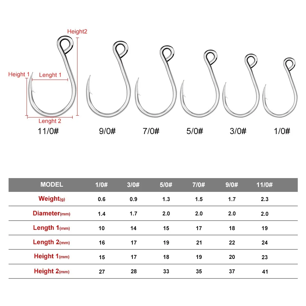 20 pçs para isca de pesca de água do mar gancho de reposição único peixe isca ganchos gancho em linha grande olho size1/0 11/0 2 6 afiado aço alto carbono