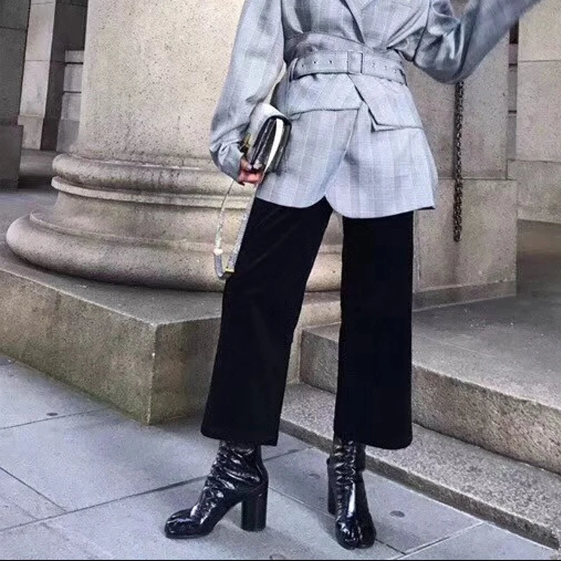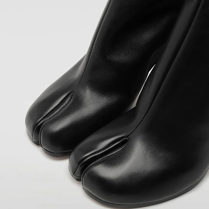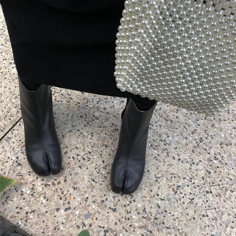- > 2024 marca de luxo design couro tabi botas moda redonda grosso salto alto tornozelo botas para mulheres outono inverno sapatos dedo do pé dividido
