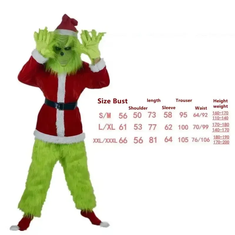 2024 novo traje de natal cosplay roupas vestir-se papai noel estranho monstro de cabelos verdes grinch festa desempenho traje
