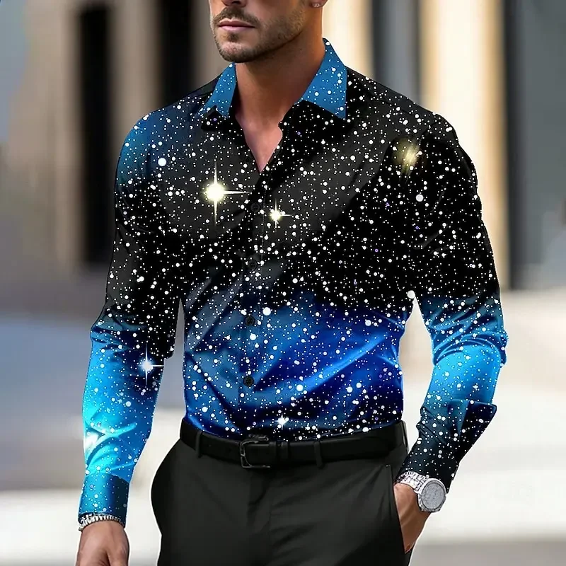 2024 venda quente camisa masculina de natal estrela/galaxy camisa de manga longa arte casual festa vestido de noite outono/inverno gola alta