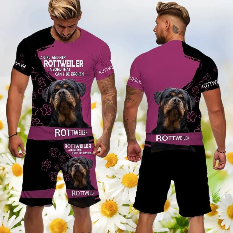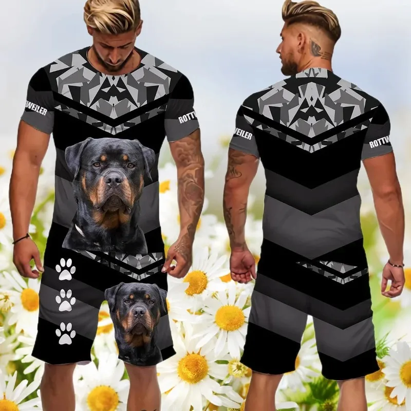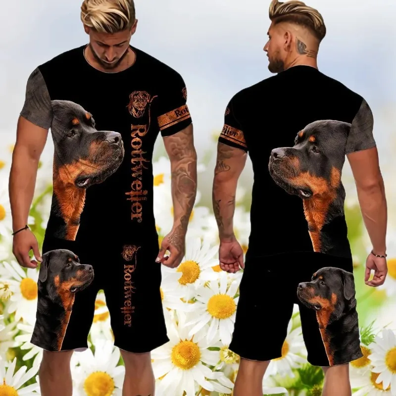 2025 3d roupas masculinas impresso t camisa rottweiler cão shorts conjunto masculino verão sportwear casual agasalho masculino moda