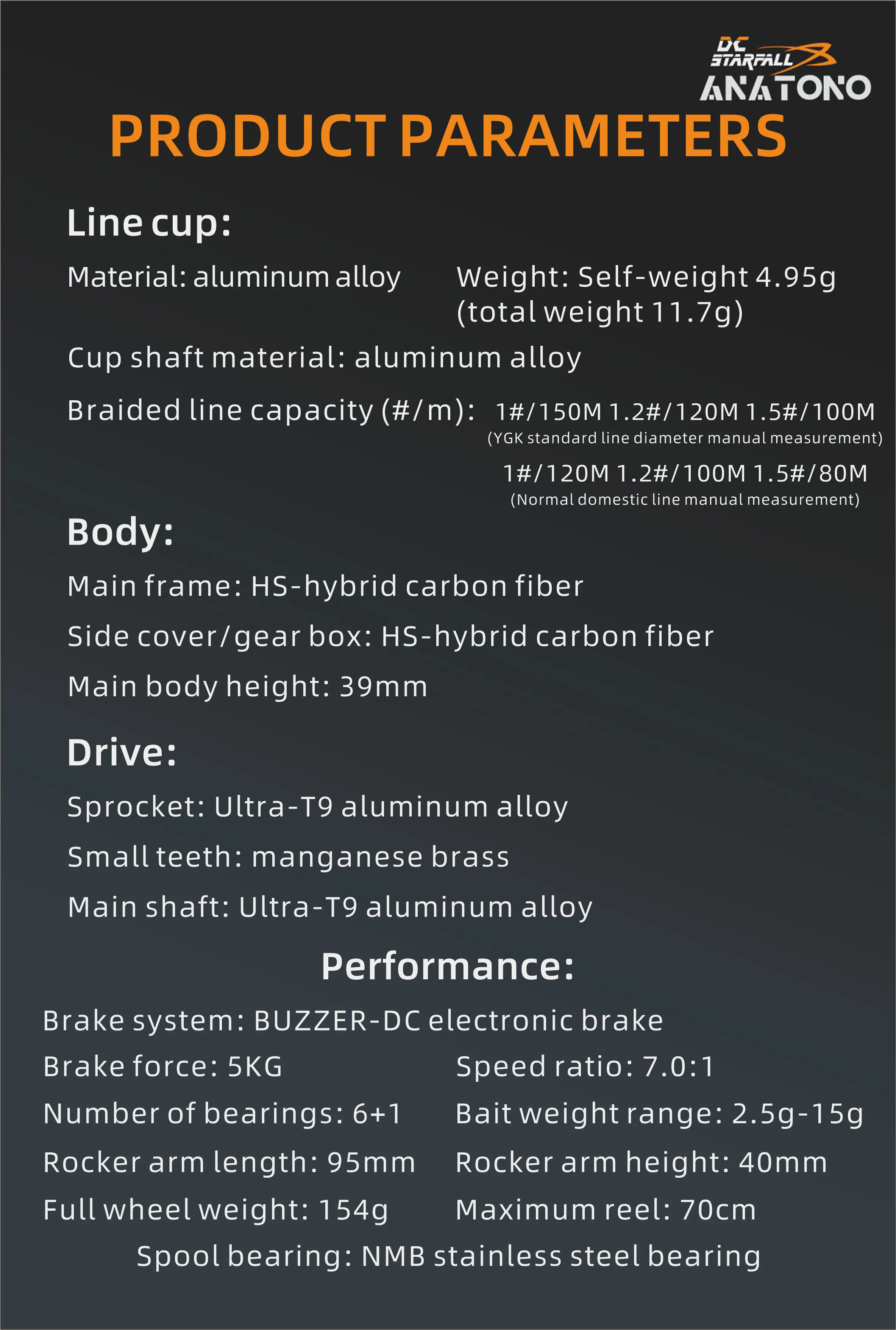 2025 ANATONO Estrela Meteorite 7: 1 Carretilhas de pesca de fundição DC 154g Carretilhas de pesca eletrônicas inteligentes à prova d'água Equipamento de pesca