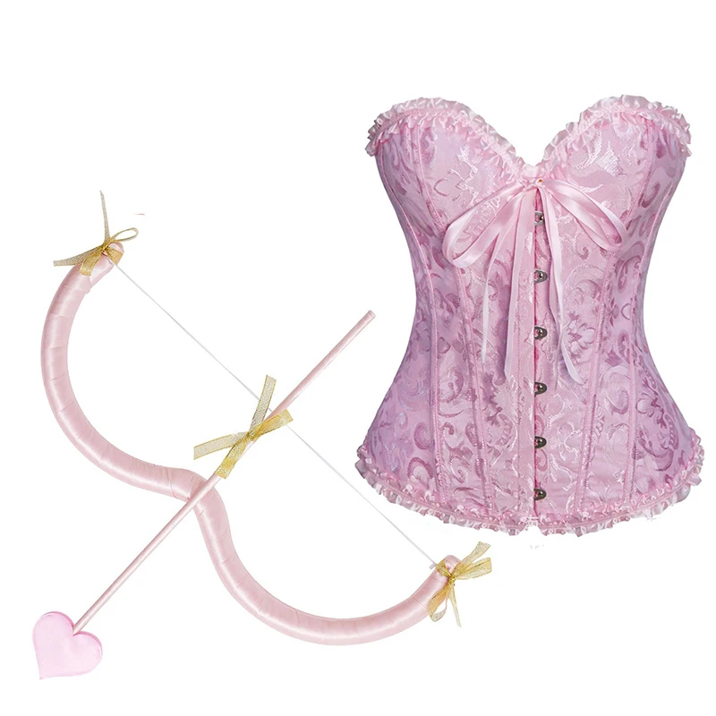 2025 Conjunto de acessórios para fantasia de Cupido dos namorados, corpete, espartilho, tops, coração, faixa de cabeça, arco e flecha, roupas