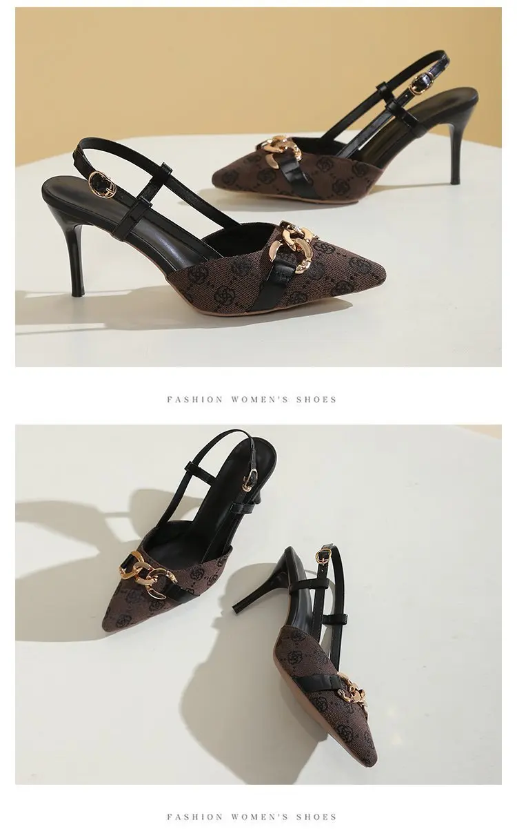 2025 moda feminina baotou sandálias primavera nova cabeça pontiaguda boca rasa fivela de metal antiderrapante resistente ao desgaste salto alto