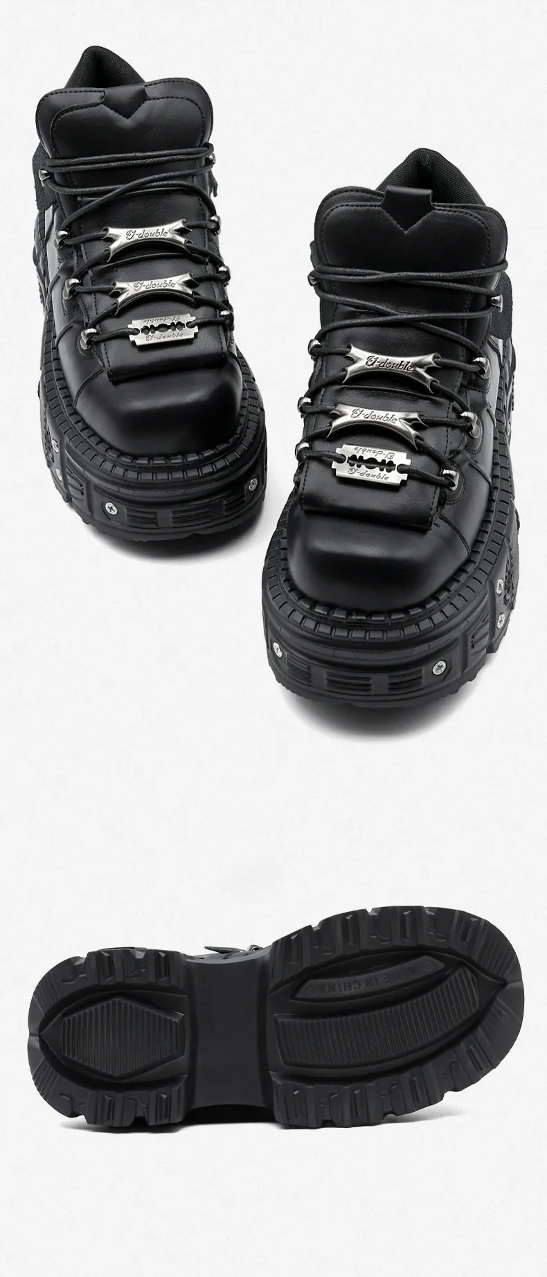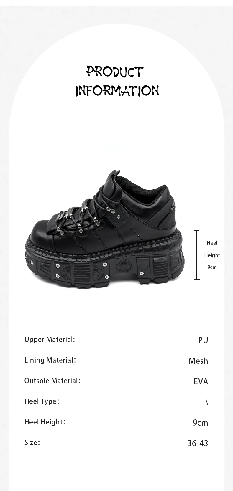 - > 2025 mulher tênis novo estilo punk sapatos femininos gótico tornozelo rock botas rendas salto altura sapatos plataforma mulher decoração de metal