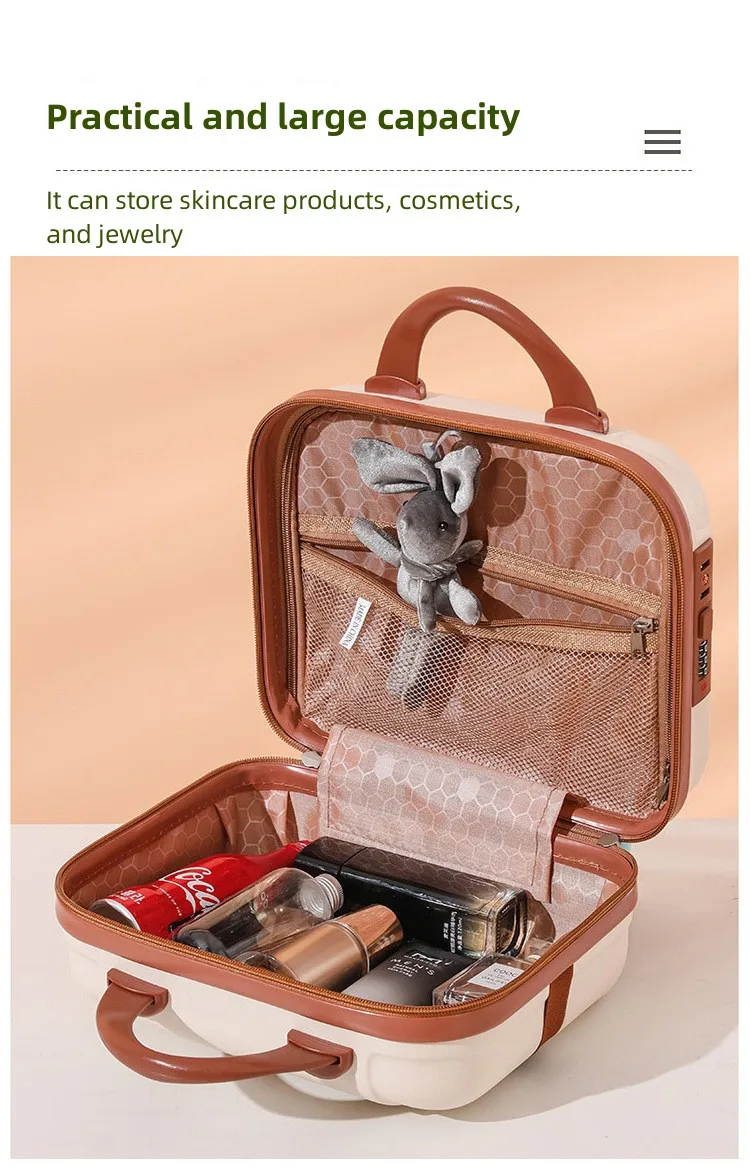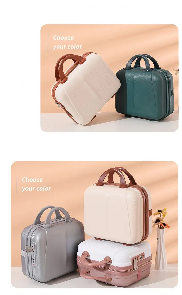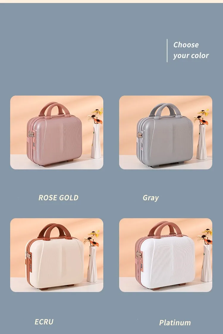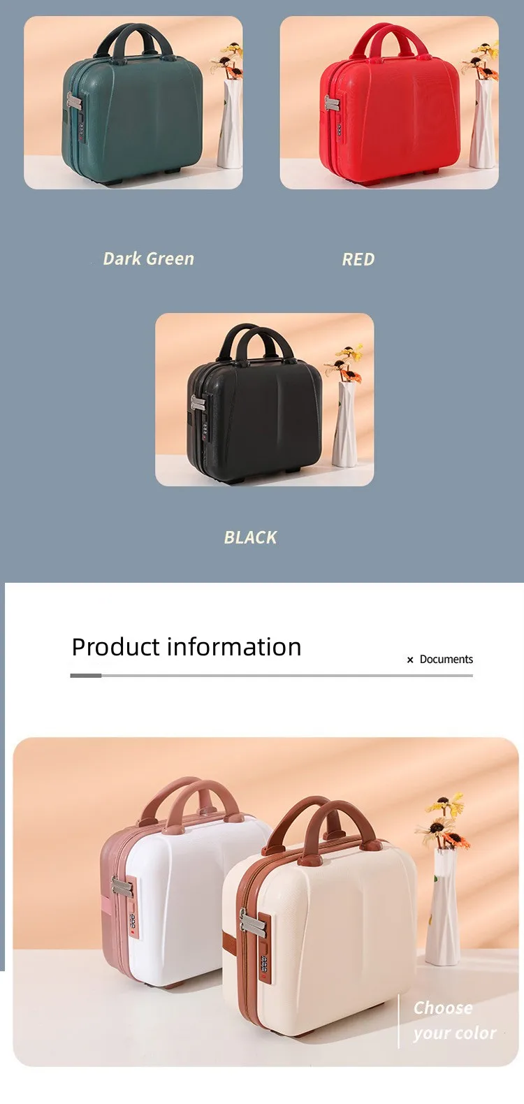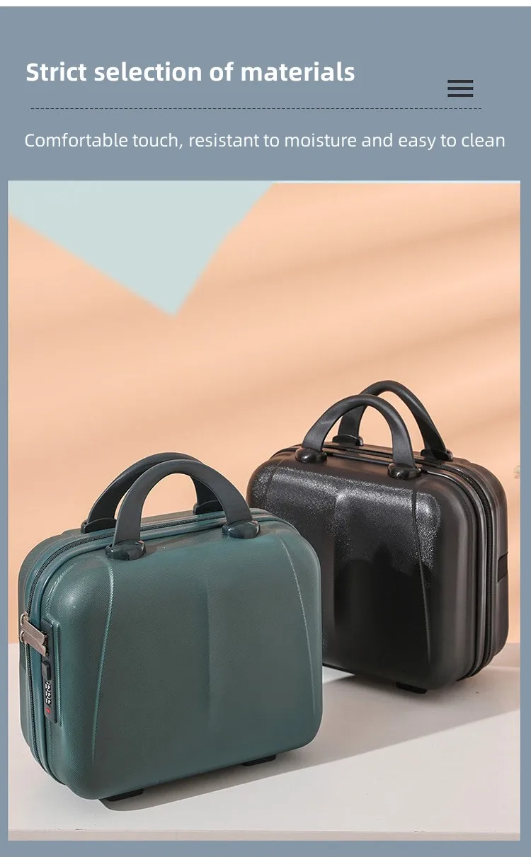 2025 Nova mala rígida de 14 polegadas à prova de água e de choque, mini mala portátil com fecho de senha, bolsa para cosméticos e bagagem de mão