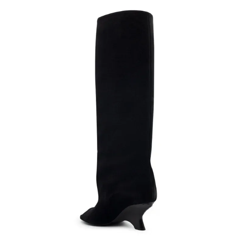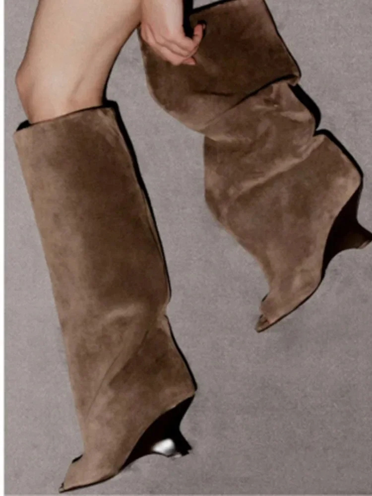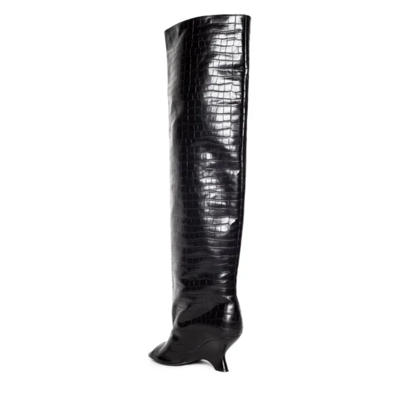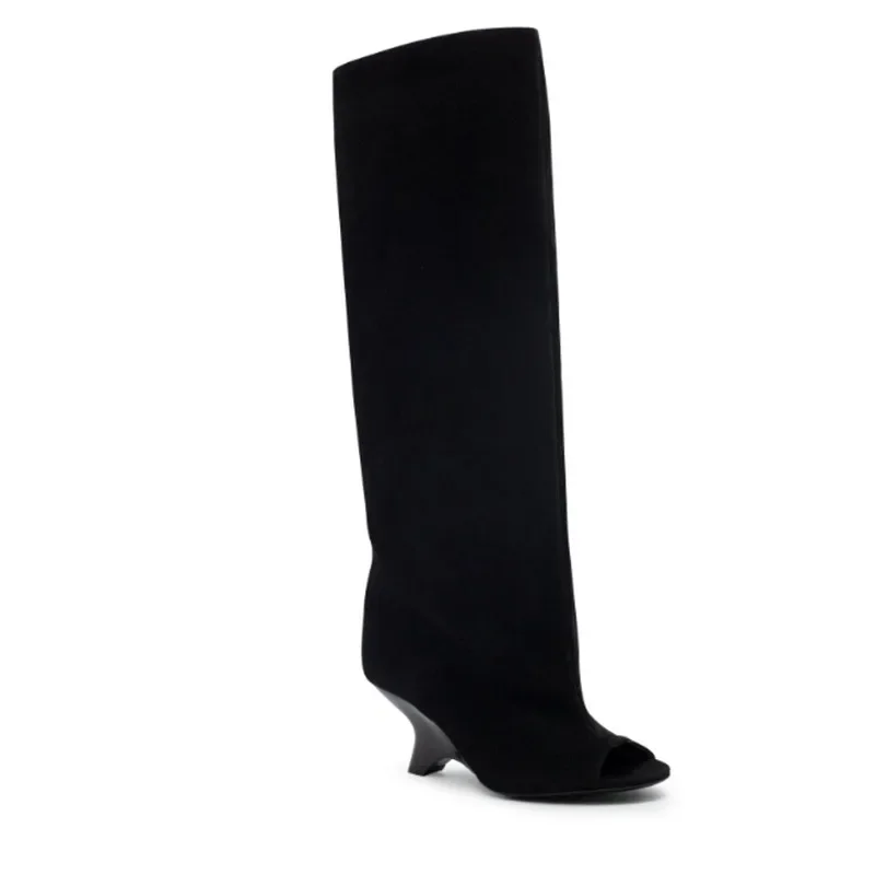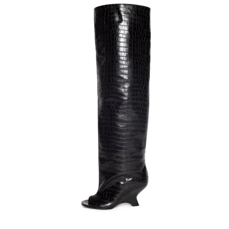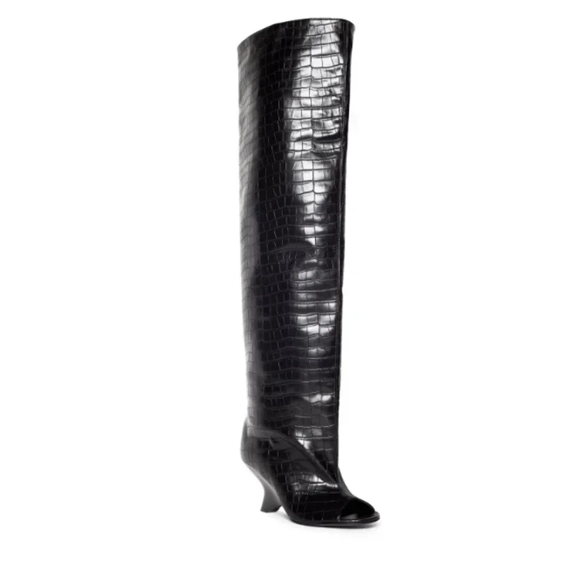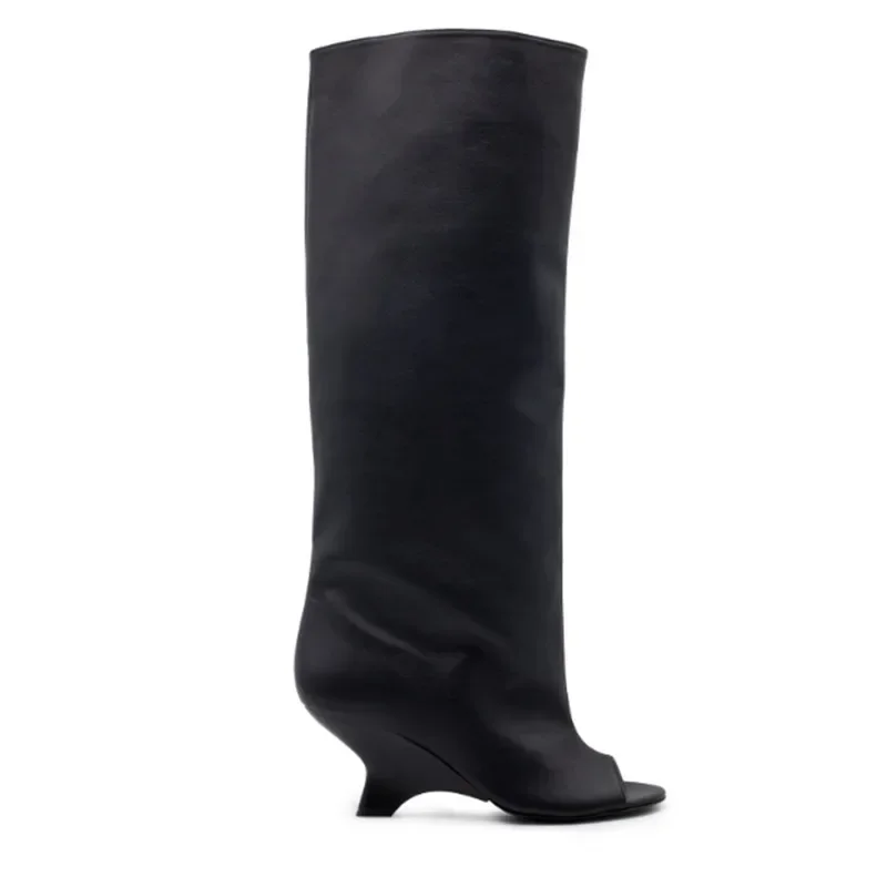 - > 2025 novas botas longas peep toe verão grosso salto alto botas de joelho feminino sapatos de tamanho grande senhoras deslizamento-em saltos estranhos botas legais