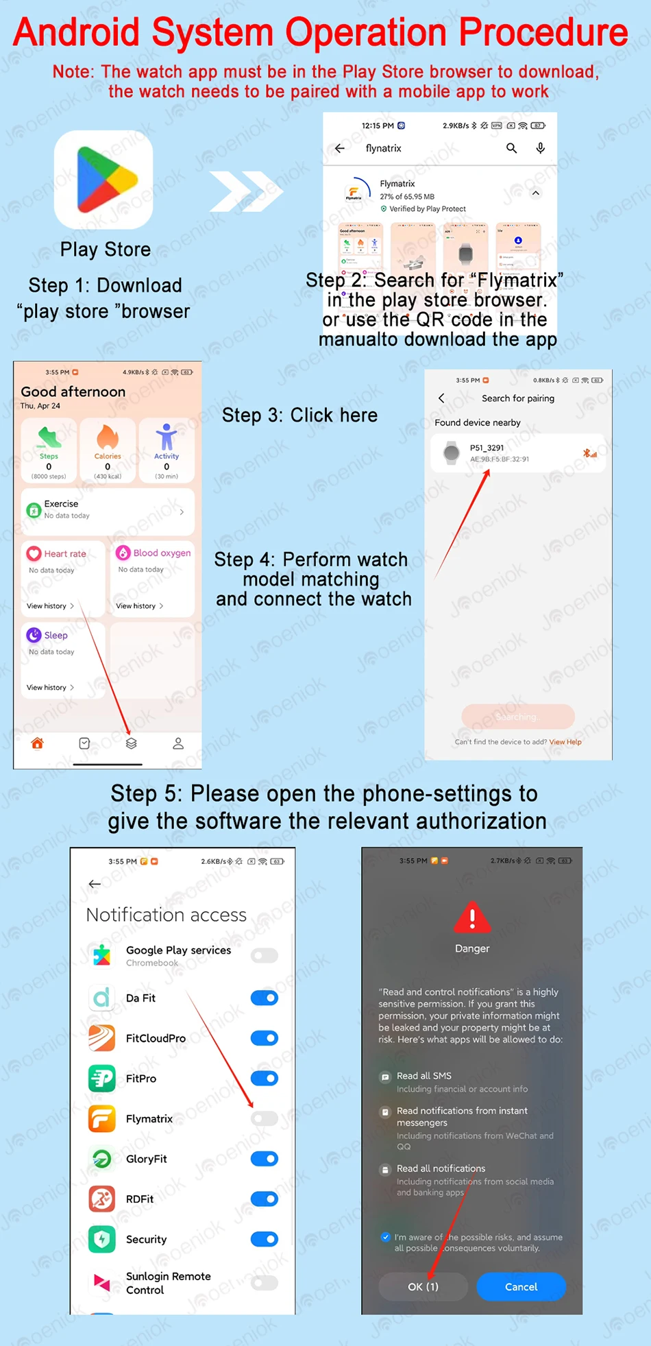 1.Este relógio deve ser instalado com o APP (Flymatrix) para ser usado!!Não pode ser usado sem baixar o APP