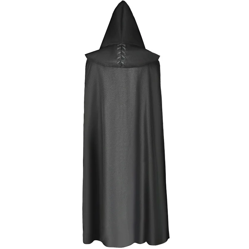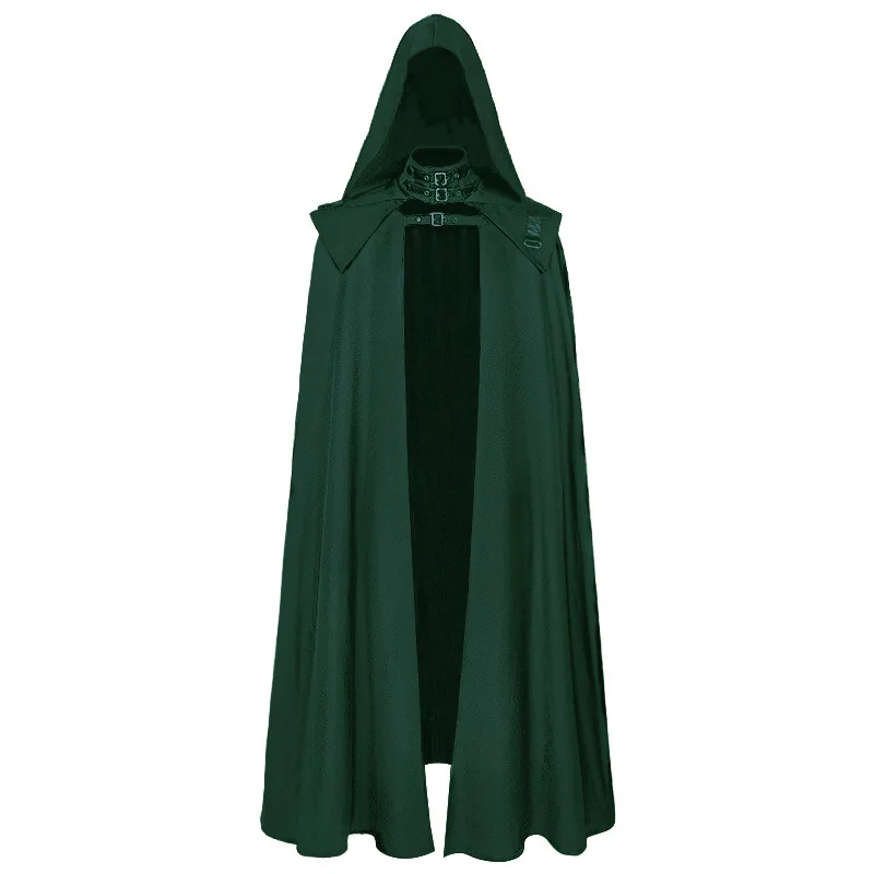 2025 novo traje de cosplay de feiticeiro medieval preto, capa vermelha com capuz, capa de morte, jaqueta longa unissex verde