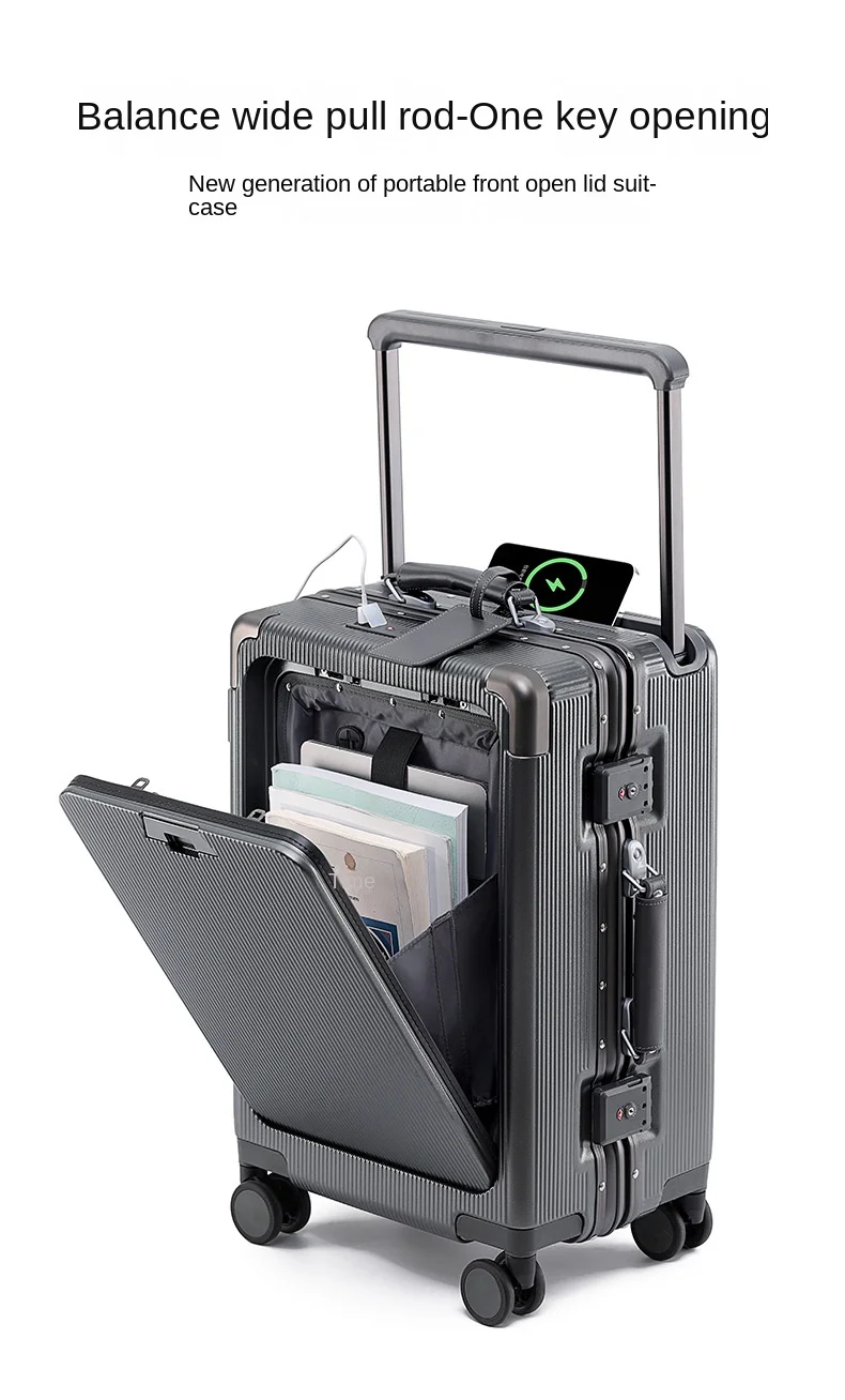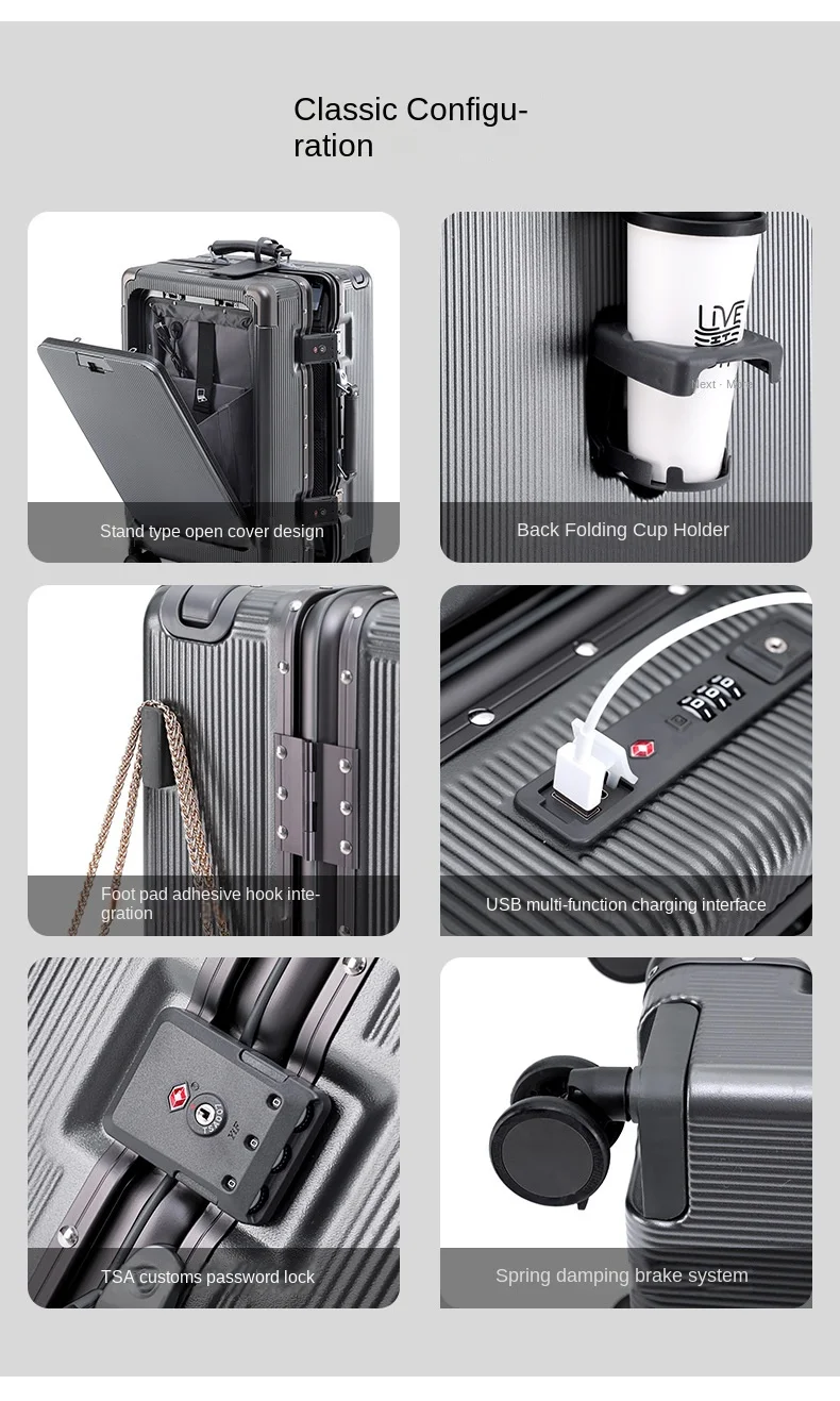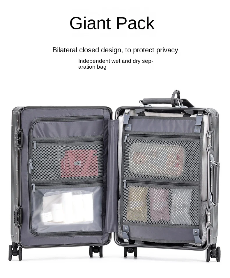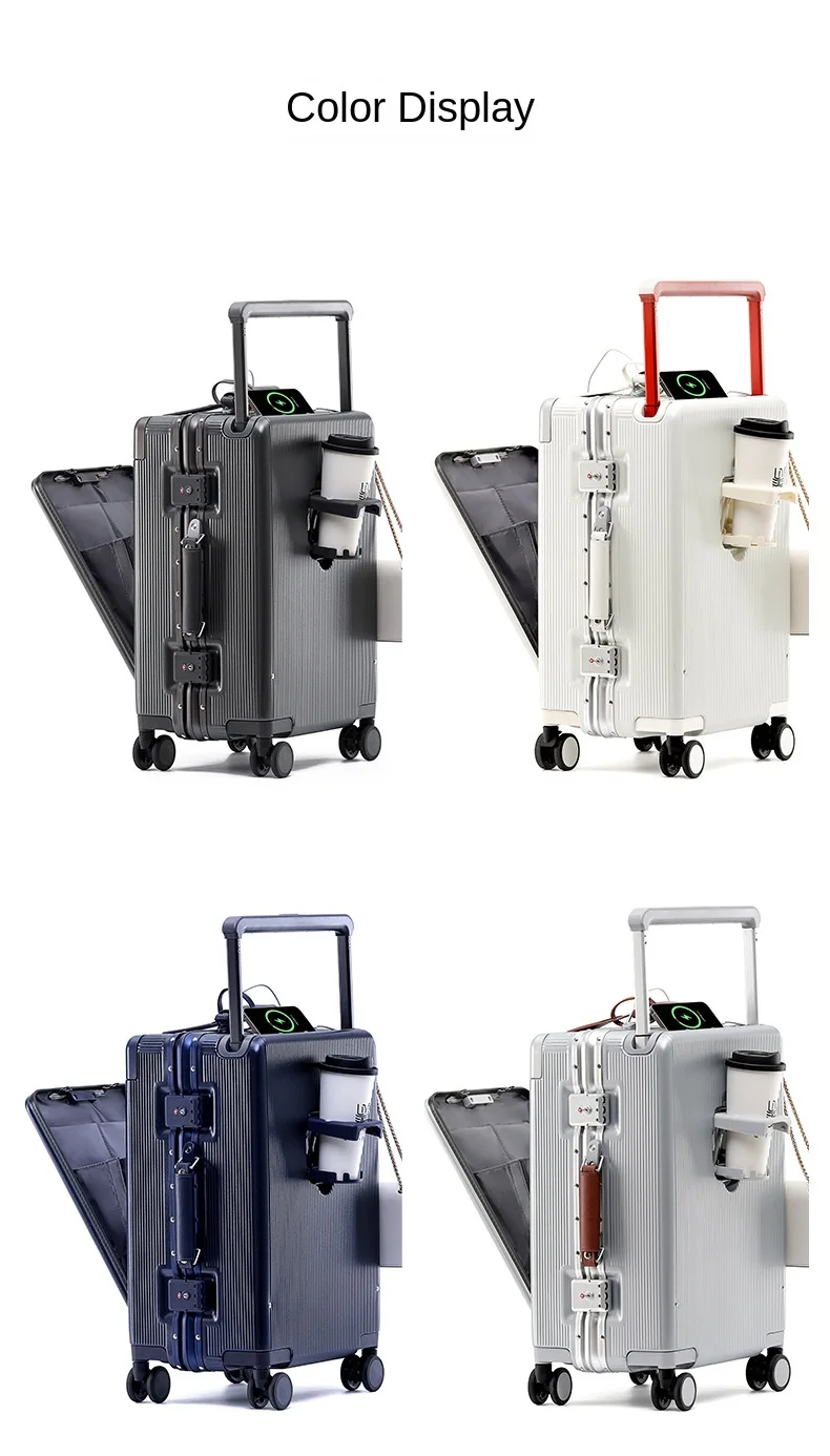 24 "26 Polegada mala de viagem quadro de alumínio ampla trole caso bagagem de mão com suporte de copo 20 Polegada caixa de embarque rolando bagagem