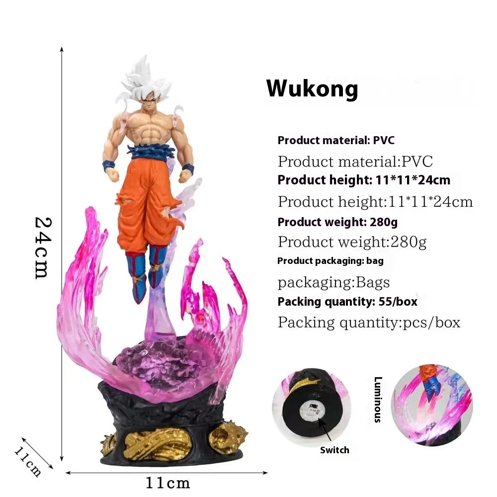 24cm anime dragon ball pode emitir figura de luz ultra instinto son goku saiyan pvc escultura boneca decoração modelo coleção presentes