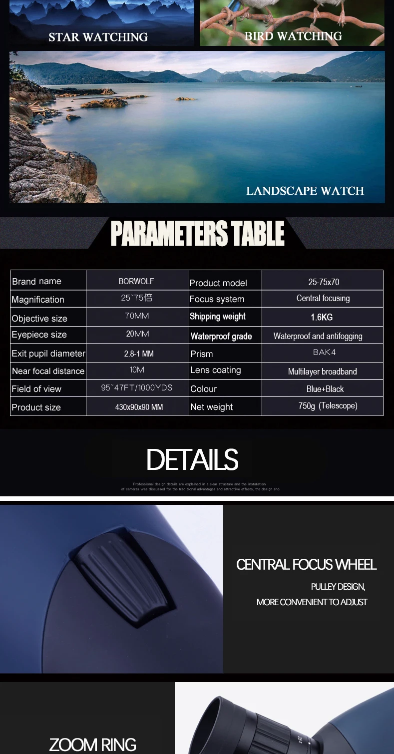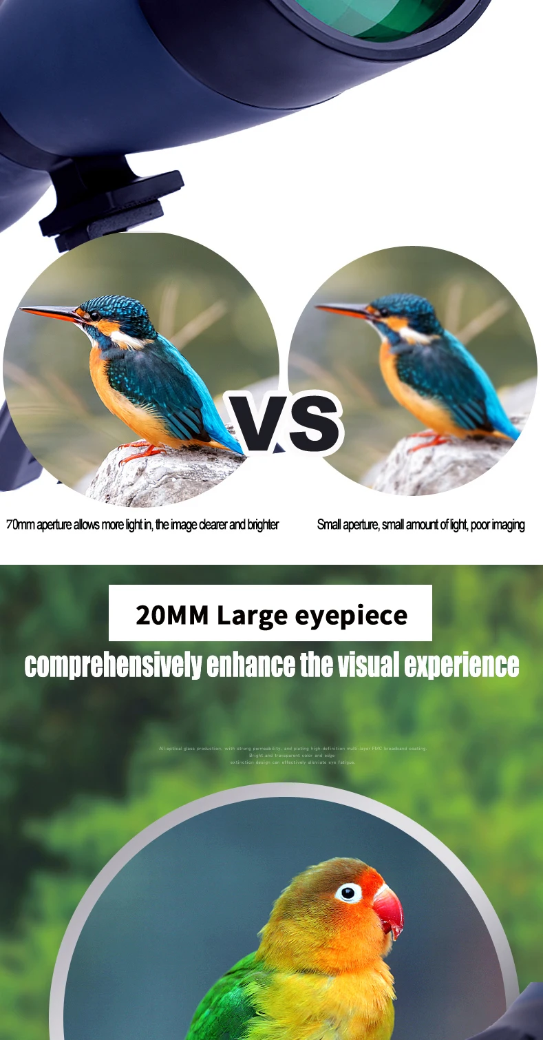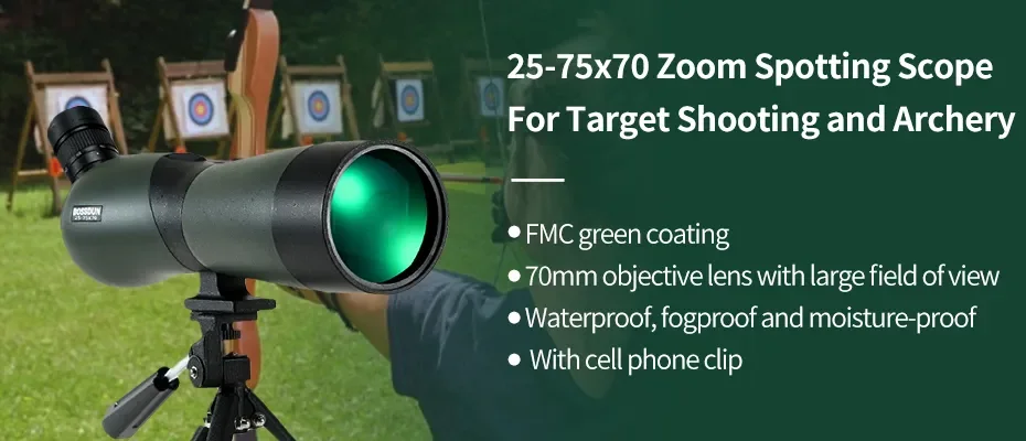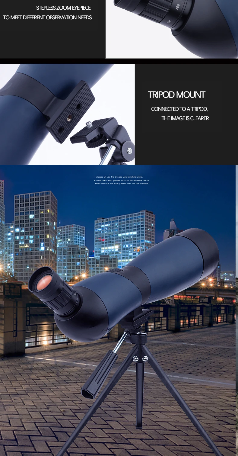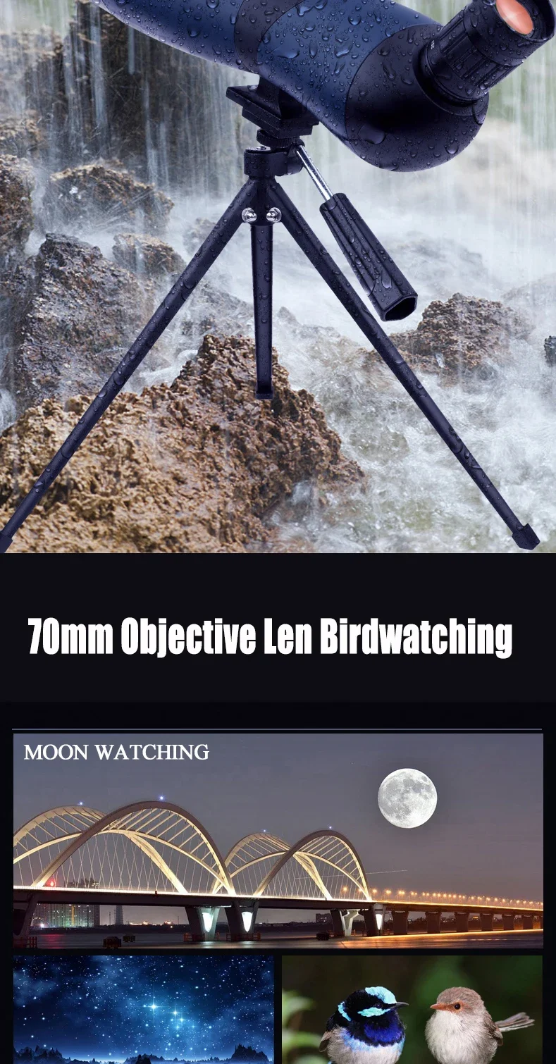 - > 25-75x70 / 20-60X60 Spotting Scope Zoom Monocular BAK7 Prisma Telescópio à prova d'água para tiro ao alvo Observação de pássaros Acampamento ao ar livre