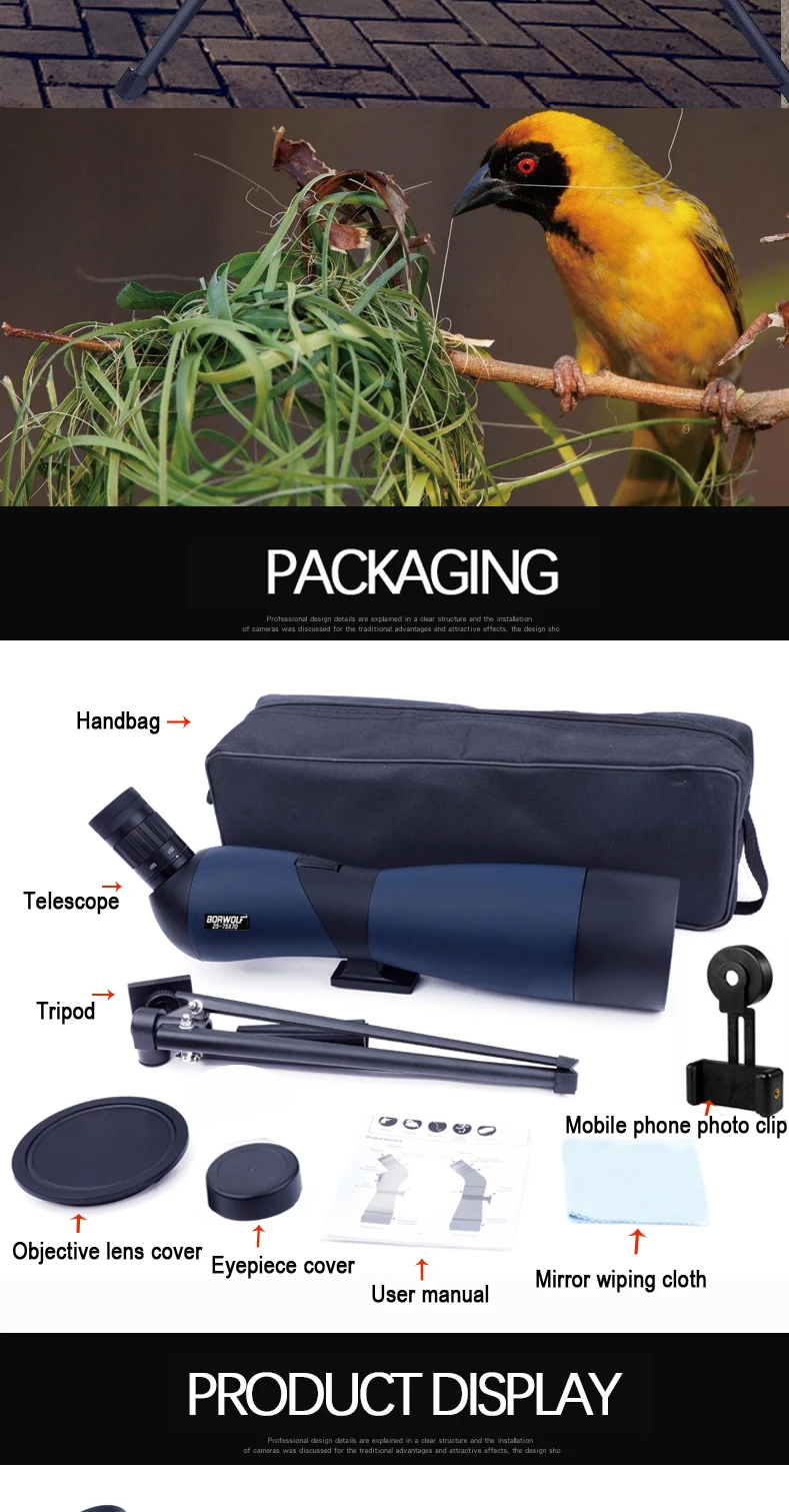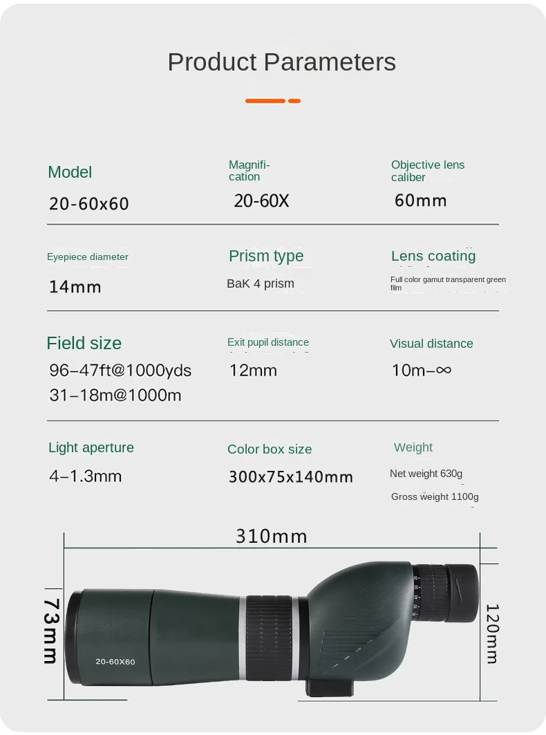 Nome do produto.Telescópio monocular com zoom 20-60x60